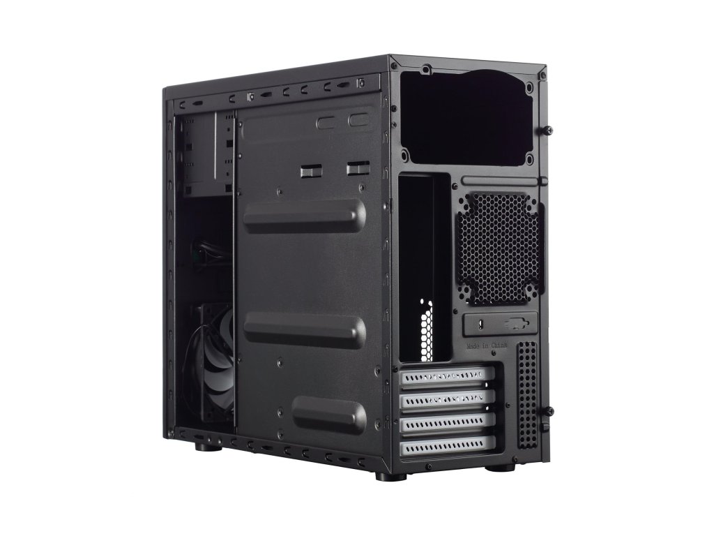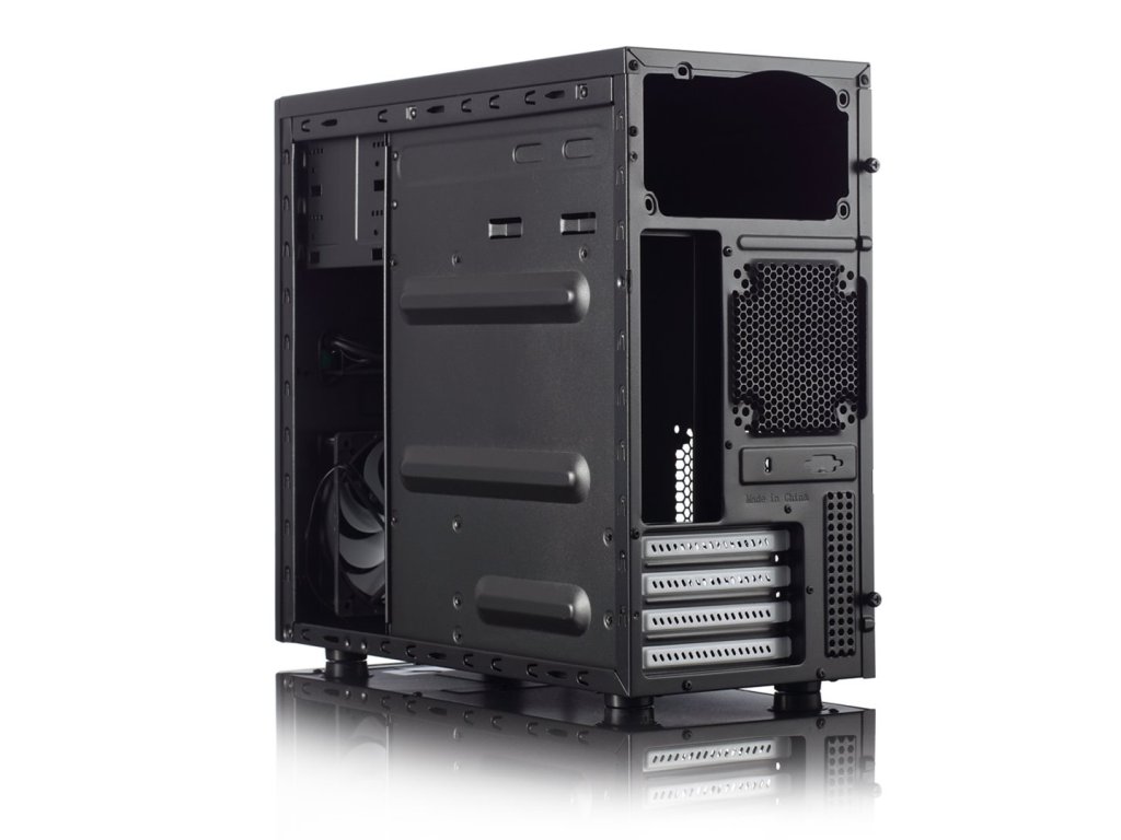 PC skriňa Fractal Design CORE 1100 Extrémne kompaktný micro ATX case, navrhnutá pre účinné chladenie pomocou ventilátorov Jeden Fractal Design 120mm ventilátor súčasťou balenia Predný panel obsahuje audio porty, 1x USB 3.0, 1x USB 2.0, zapínacie a reset tlačidlo Predný prachový filter a tesný kontakt jednotlivých ľahšiu údržbu. Inovatívne vertikálne HDD bracket, ktorý môže držať 2x 3.5" zariadenia alebo 3x 2.5" zariadenia alebo po jednom z každej veľkosti Antivibračné uchytenie pre oba 3.5" sloty Plne nafarbený interiér s bielymi Fractal Design detaily Farba: čierna Bočnica: perforovaná Formát skrine: Micro Tower Hĺbka [H04 Indikácia činnosti disku: LED dióda Indikácia zapnutia PC: LED dióda Materiál: kov, hliník, plast Max. dĺžka grafickej karty [mm]: 350 Max. výška chladiča procesora [mm]: 148 Obsah balenia: skriňa, užívateľský manuál (spoločná s 3,5") Počet 3,5" pozícií interných: 2 (1 kompatibilný s 2.5") Počet 5,25" pozícií externých: 2 Počet pozícií pre karty: 4 Počet predných USB 2.0: 1 Počet predných USB 3.0: 1 Podpora základných dosiek: Micro ATX, Mini ITX 0 2 Šírka [mm]: 175 Výstup na slúchadlá vpredu: áno Výška [mm]: 358 Zdroj [W]: Bez zdrojaDodatočné parametre