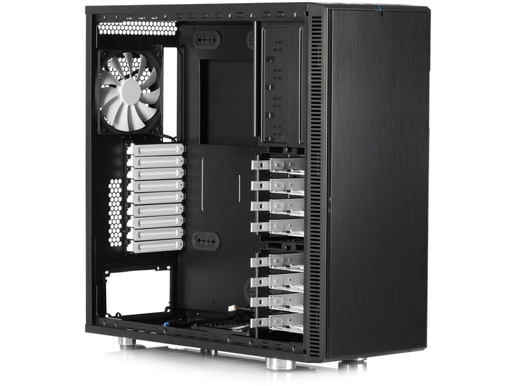Špecifikácia: ATX, Micro ATX, Mini ATX, E-ATX a XL-ATX 4-5,25 "pozície 8 - 3.5" HDD zásobníky - všetko kompatibilné s SSD diskami celkom 9 rozširujúcich slotov 3 - ModuVent ™ dosky - dva v hornej a jeden na boku 7 - Fan pozícií (3 ventilátory v cene chladiče do 170 mm výšky (keď nie je ventilátor inštalovaný v bočnom paneli) PSU kompatibilita: ATX PSU až s 190 mm hĺbkou pri použití spodnej polohy základnou doskou Silné pryžové priechodky na všetkých otvoroch v doske Case Rozmery (ŠxVxH): 232 x 559 x 560 mm Čistá hmotnosť: 16,4 kg Balenie Rozmery (ŠxVxH): 322 x 637 x 655 mm Hmotnosť balenia: 19 kg Chladenie Silent Series R2 ventilátor, 1000 RPM otáčky (vrátane), 1 - 120/140mm ventilátor (nie je súčasťou dodávky) Zadné: 1 - hydraulické ložisko 140mm Silent Series R2 ventilátor, 1000 RPM otáčok (v cene) Top: 2 - 120/140 240/280mm štíhle radiátory Spodné: 1 - hydraulické ložisko 140mm Silent Series R2 ventilátor, 1000 RPM otáčok (v cene) Bočné: 1 až 140 mm ventilátor (nie je súčasťou dodávky) Ventilátor - regulátor: 1 - Integrovaný regulátor ovládajúci až 3 240mm radiátor, pokiaľ sú HDD klietky odstránené alebo premiestnené Top - 240 a 280 mm pri použití tenkých radiátorov Spodné - 120mm radiátory Zadné - 120 a 140mm radiátory Predné rozhranie: 2 - USB 3.0, 2 - USB 2.0 Audio in / Obsah balenia: Define XL R2 počítačová skriňa Box s príslušenstvom Návod na použitie
