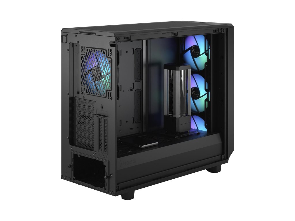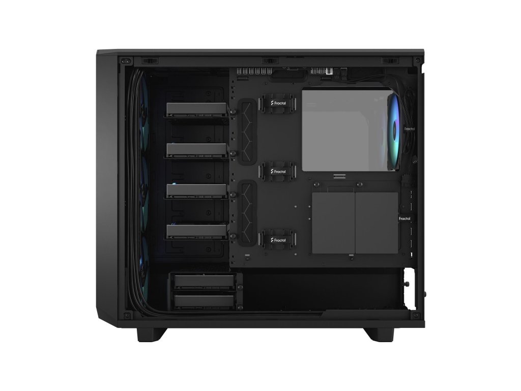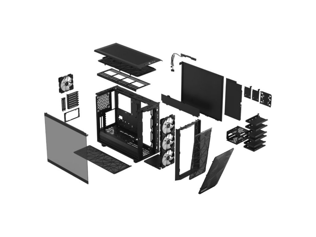 Meshify 2 RGB je vysoko výkonná skrinka s odvážnou estetikou inšpirovanou stealth technológiou. Jej výrazný exteriér je vybavený zapusteným tvrzeným sklom bez skrutiek, plne odnímateľnou hornou časťou poskytujúcou vynikajúci prístup do interiéru a prednou časťou s USB-C, výklopným panelom napájania a odnímateľným nylonovým filtrom. Flexibilný dvojvrstvový interiér podporuje veľké úložné polia a zostavy s viacerými chladičmi, vďaka ktorým je chladenie hračkou. Dodáva sa so 4x predinštalovanými ventilátormi Aspect 14 RGB PWM Priestranný prispôsobený interiér pre základné dosky do 285 mm E-ATX vrátane Vstavaný RGB regulátor na prednom/vrchnom I/O s ikonickým efektom Fractal Northern Lights Farba: čierna Rozmery: 542 x 250 Maximálna dĺžka karty VGA: 450 mm Počet rozširujúcich slotov: 7 + 2 Typ napájania: ATX Podporuje základné dosky: E-ATX (max. 285 mm) / ATX / mATX / Mini-ITX Externé vstupy a výstupy: 1x USB 3.1 Gen 2 Type-C 2x USB 3. RGB Pole pre ukladanie na disk: 6 x 3,5"/2,5" pevný disk (6 je súčasťou balenia, spolu 14 pozícií + 3 viacnásobné držiaky) 2 x 2,5" pevný disk (2 sú súčasťou dodávky, spolu 4 pozície) Podpora dodatočného chladenia: 3x 120/140 mm Zadná časť: 1x 120/140 mm (včetne 1x Aspect 14 RGB PWM) Spodná časť: 2x 120/140 mmDodatočné parametre
