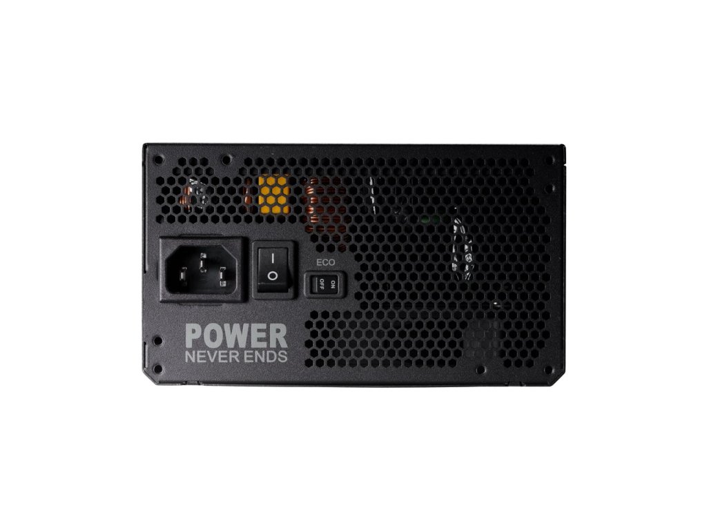 "Eco Switch" umožňuje tichšiu prevádzku zdroja a nižšiu spotrebu energie. Ak je zaťaženie zdroja menšie ako 40 %, zdroj prejde do tichého režimu a ventilátor sa vypne.