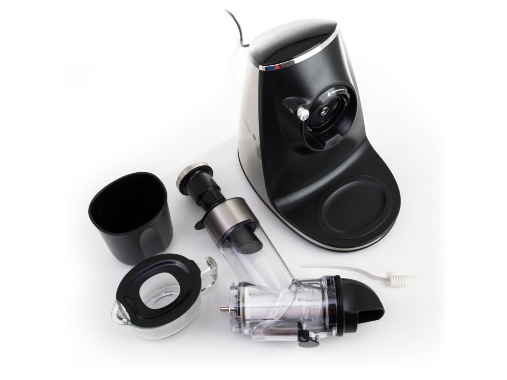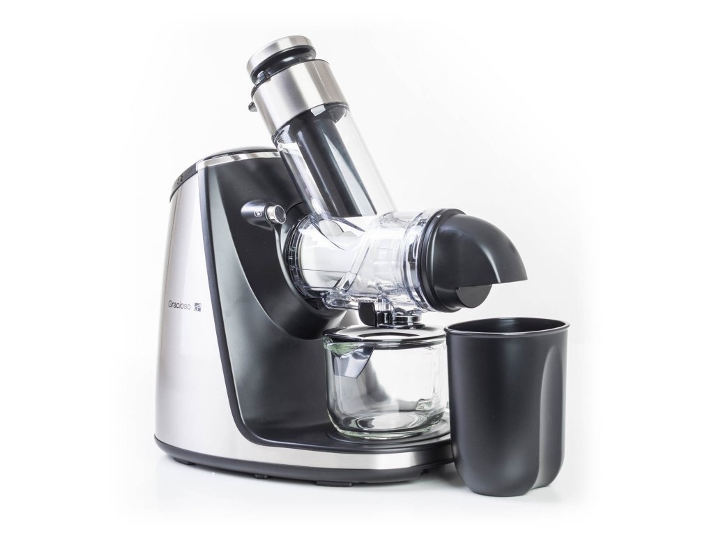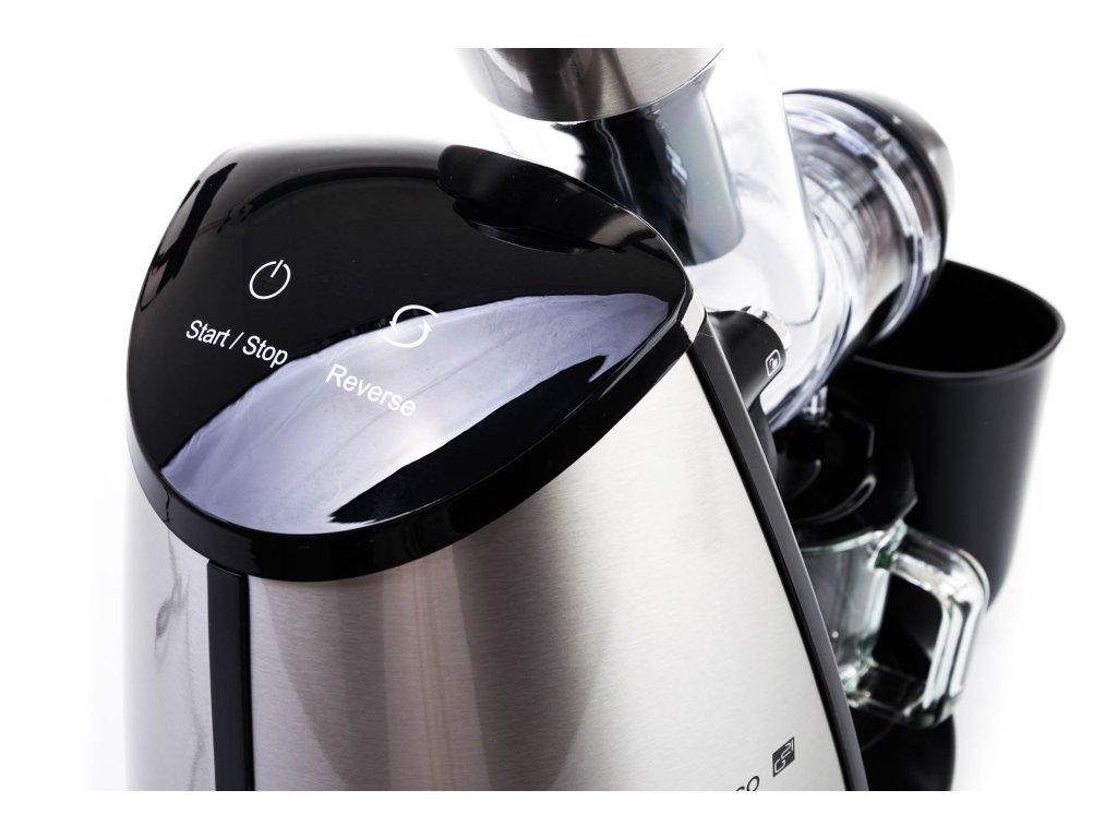 Odšťavovač G21 Gracioso horizontal je multifunkčná superhrdina, ktorý vám pomôže pripraviť dostatok zdravej šťavy zo všetkých druhov ovocia a zeleniny pre celú rodinu. Vyrobte si ovocné a zeleninové šťavy v pohodlí vlastnej kuchyne, doprajte si to najlepšie pre svoje zdravie. Novinka so super výkonom Robustná konštrukcia a kvalitné materiály robia z odšťavovača G21 Gracioso jedničku na trhu s odšťavovaním. Vďaka motoru s výkonom 200 W bez problémov spracuje aj s tvrdou koreňovou zeleninou, ako je mrkva alebo zeler. Keramický slimák si poradí so všetkým, ako lusknutím prsta vyrobí mrkvový džús s extra dávkou vitamínov. TIP: Vyrobte si džús z jablka a řapíkatého zeleru. Skúsili sme ho a naozaj stál za to. Klenot vašej kuchyne Odšťavovač G21 Gracioso nie je len super funkčným, ale aj dizajnovým kúskom. Milovníkov krásnych vecí poteší jeho čisté elegantné spracovanie. Vďaka hladkým líniám a nerezovému prevedeniu odšťavovač G21 Gracioso ozdobí každú kuchynskú linku. Super doplnky, jednoduché ovládanie, jednoduchá údržba Odšťavovač G21 Gracioso k vám nepríde sám, vezme si so sebou pomocníkov. Na odšťavenú dreň sme vám pribalili nádobku z odolného plastu. Samozrejme nechýba ani praktické vtláčadlo. Ovládanie odšťavovača spočíva v prepínaní dvoch dotykových tlačidiel. Jedným tlačidlom prístroj zapnete a vypnete a druhým prepnete na spätný chod. Keď sa vám v slimáku zasekne kúsok ovocia či zeleniny, nezúfajte. Prepnite na spätný chod, slimák sa uvoľní a môžete pokračovať v práci. Údržba je jednoduchá a rýchla. Stlačte tlačidlo na uvoľnenie zámku, vysuňte pracovnú časť a opláchnite ju pod tečúcou vodou. Hotovo. Celé jabĺčko? Samozrejme! Nezdržujte sa zdĺhavým krájaním ovocia a zeleniny na malé kúsky. Vďaka otvoru na plnenie s priemerom 7,5 cm môžete vložiť do odšťavovača suroviny aj v celku. Plniaci otvor je uspôsobený na vkladanie veľkých kusov ovocia a zeleniny, ako sú mandarínky alebo jabĺčka aj na odšťavovanie podlhovastých surovín, napríklad mrkvy alebo rapíkatého zeleru. Nakopnite sa! Šťavy z odšťavovača G21 Gracioso dodajú vášmu telu všetky dôležité živiny. Sú bohaté na enzýmy a vitamíny, ktoré vaše telo potrebuje na zlepšenie imunitného systému a celkovej kondície. Džús obsahuje presne to, čo máte radi – len chutnú, zdravú šťavu, ktorá vás nakopne na celý deň. Na rozdiel od kupovaných džúsov neobsahuje žiadne konzervanty, pridané dochucovadlá, farbivá ani iné chemické „doplnky“. Majte kontrolu nad tým, čo svojmu telu dávate! Parametre a špecifikácie: Napätie: 220 – 240 V Frekvencia: 50 Hz – 60 Hz Výkon: 200 W Rýchlosť otáčok: 70 ot./min. Priemer otvoru na vhadzovanie: 7,5 cm, otvor pri zatvorenej záklopke 4,5 cm Pechovadlo: plastové Nádoba na odpad: plastová, rozmery 12 x 14 x 10 cm Nádobka na džús: plastová, 13 x 9,5 x 11 cm Rozmery: 42 x 40 x 20 4 roky Extra veľký otvor pre vhadzovanie surovín Bezpečnostná záklopka Poistka pre sňatie pracovnej časti Rozkladacia pracovná časť, ľahká údržbaDodatočné parametre