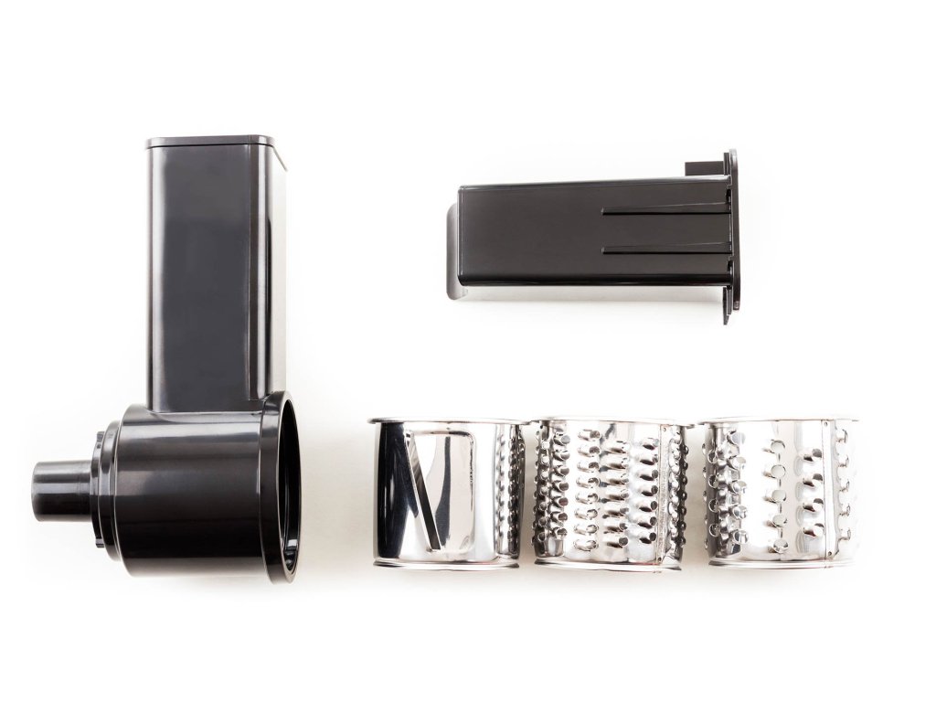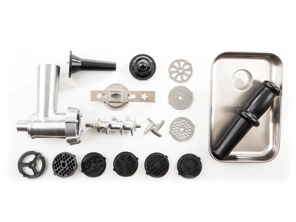 Jeden za všetky - charakteristika kuchynského robota G21 Promesso je presná. S masívnym celokovovým telom, výkonom 1 500 W a neuveriteľne bohatým príslušenstvom zastane všetku prácu pri príprave na varenie, pečenie aj mixovanie. Ručíme zaň 4 roky! Čo vie? Všetko Mieša, strúha, hnetie. Vďaka špeciálnemu nástavcu na pečivo vytvaruje pečivo na všetky druhy osláv a sviatkov. Umelo mäso, pripraví rezance, uhnite vláčne aj tuhšie cesto na kysnutie. Umixuje dokonale hladké smoothie a nastrúha všetko od orieškov po tvrdú koreňovú zeleninu. Skvelý pomer ceny a výkonu Výkonom 1 500 W sa radí k najsilnejším kuchynským spotrebičom na trhu. V čom je tak skvelý? Preniesli sme technológiu profesionálnych hnetačov do tohto domáceho robota. Vďaka kvalitnému prevedeniu, vysokému výkonu, pevnému telu a celokovovým prevodom vám bude doma slúžiť mnoho rokov. Jeho cena je preto veľmi výhodná. Svojim výrobkom veríme, preto vám poskytneme 4-ročnú záruku a to na celý prístroj. Prezrite si ho zo všetkých strán, masívne celokovové telo zaručuje spoľahlivosť, protišmyková úprava navyše stabilitu. Planetárny systém miešania Čo to znamená? Metla sa otáča okolo svojej osi a zároveň okolo obvodu misy. Všetky vložené suroviny sa tak premiešajú dokonale a rýchlejšie ako je bežné. Ide o najefektívnejší spôsob miešania, ktorý vám ušetrí čas, strávený v kuchyni. Ďalšia veľká prednosť - ľahká výmena nástavcov Mysleli sme naozaj na všetko, preto sme nástavce navrhli tak, aby ich výmena bola naozaj rýchla a ľahká a nijako vás nezdržovala. Rovnako je to s údržbou a čistením. Kuchynský robot G21 Promesso preto môžete používať bez obáv as radosťou. Pozrime sa na príslušenstvo a schopnosti podrobnejšie Hnetací hák zvládne vymiešať ako kysnuté, tak ťažké cestá. Ušetrí vám tak tú najnepríjemnejšiu prácu pri pečení. Domáci chlieb, alebo slivkový či tvarohový koláč tak pre vás už bude hračkou. Miešacia metla poslúži pri príprave treného cesta, tortových zmesí a krémov. Upečte nadýchanú a lahodnú tortu alebo múčnik na nedeľné popoludnie. Dezert, ktorý prevonia váš byt a rozplynie sa na jazyku. Balónová šľahacia metla vďaka planetárnemu systému pripraví sneh z bielkov alebo lahodnú šľahačku dokonale a rýchlo. Nástavec na tvarovanie pečiva vám vykúzli pečivo presne podľa vašich predstáv. Také, ktoré potešia vaše oči aj chute. Strúhadlo obsahuje 3 typy nástavcov, ktoré vám zaručene uľahčia prípravu. Jeden postrúha oriešky, druhý behom pár sekúnd pripraví dokonale tenké plátky zeleniny, tretí ozdobí vaše špagety syrovou čiapkou alebo najemno postrúha zemiaky do chrumkavého zemiaku. Mlynček na mäso obsahuje 3 veľkosti mlecích doštičiek pre rôznu hrubosť mäsa. Príprava sekanej, fašírok alebo napríklad výborného tatárskeho bifteku je pre neho hračkou a pre vás radosťou. Pri kuchynskom robote nechýba ani príslušenstvo na výrobu klobás. Vymeňte doštičku z mlynčeka za nástavec na klobásy a výroba klobás môže začať. Nezabudnite si ku klobáse ukrojiť voňavý domáci chlieb, s ktorým vám pomohol hnetací hák. Na mlynček môžete pripevniť aj disky na cestoviny. Ľahko a rýchlo tak vykúzlite výborné talianske penne, domáce široké rezance alebo toľko obľúbené špagety. Aby sa pri výrobe cestoviny nezlepili, sú disky prispôsobené špeciálnymi výbežkami. Mixovanie je pohodlné vďaka praktickej sklenenej nádobe s obsahom 1,6 l. Smoothie alebo napríklad zeleninovú polievku budete mať za chvíľu. Príslušenstvo: Nerezová misa o objeme 5,5 l, vrátane priehľadného krytu Hnetací hák Miešacia metla Šľahacia metla Mlynček na mäso Nástavce na výrobu a plnenie klobás Nástavce na výrobu cukroví Nástavce na výrobu cestovín Nástavec na strúhanie - 3 druhy strúhadiel Skle. Univerzálny robot v celokovovom tele je vybavený 1 500W motorom a protišmykovou úpravou B. Objemná 5,5 l nádoba z nerezovej ocele C. Hnetač s planetárnym systémom a vymeniteľnými nástavcami – hnetací hák, šľahacia metla, a miešacia metla D, Výkonný mix. z nerezovej ocele s príslušenstvom na výrobu klobás F. Praktický strúhač a krájač zeleniny obsahuje jemné a hrubé strúhadlo a krájač plátkov G. Nástavce na výrobu sušienok a cestovín s diskami na špagety, pappardelle, macaroni a tettuccine Parametre a špecifikácie: 6 Planetárny systém miešania 5,5 l nerezová miska Protišmykové nôžky, zabraňujúce pohybu robota pri používaní Odnímateľná misa a príslušenstvo pre ľahké umývanie v umývačke Výkon motora: 1 500 W Počet otáčok mixéra: 18 000 ot./min. Priemer misy: 24 cm Rozmery: 37,5 x 17,5 x 36 cm Hmotnosť: 8,7 kg Rozmery balenia: 58 x 45,5 x 34,5 cm Hmotnosť balenia: 15 kgDodatočné parametre