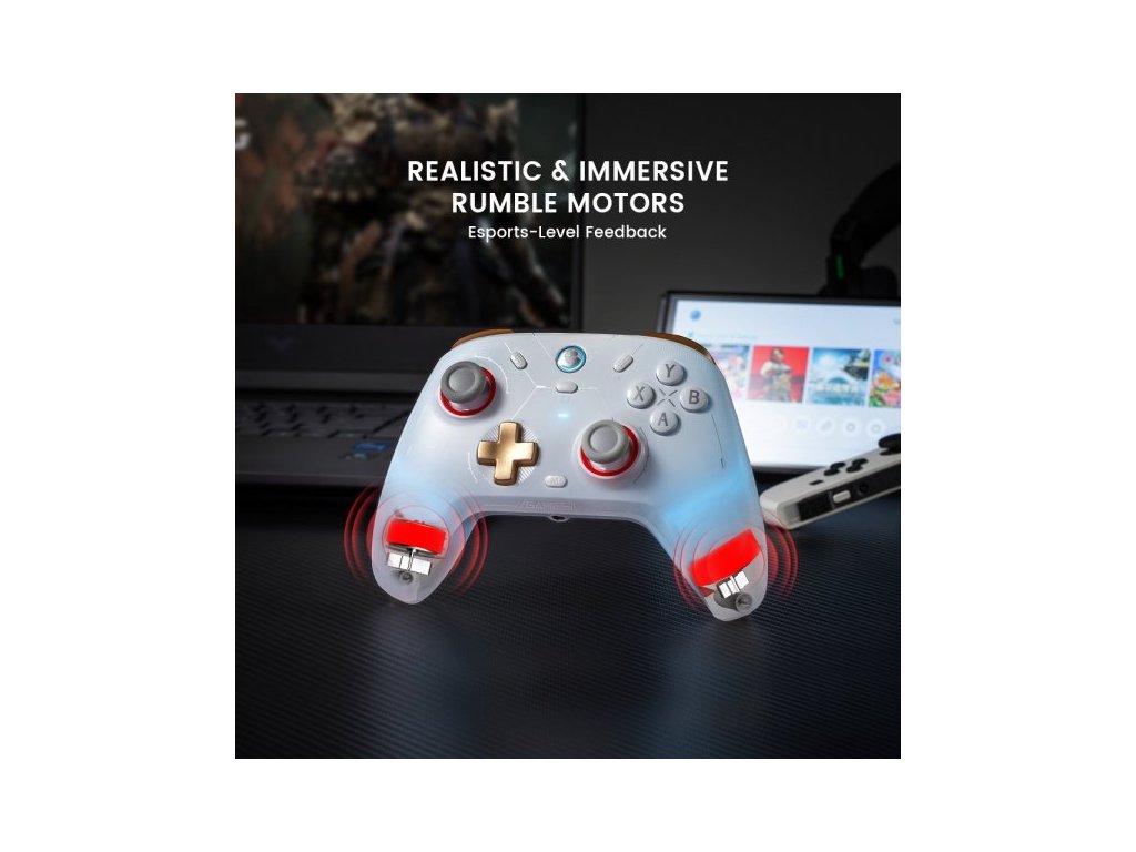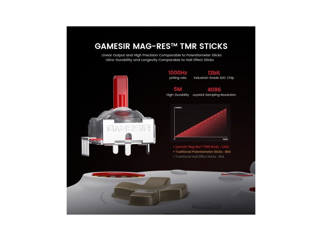 Zažite bezkonkurenčnú presnosť a vysoký výkon s ovládačom GameSir Cyclone 2. Tento špičkový multiplatformový ovládač je vybavený úplne novými páčkami Mag-ResTM TMR a analógovými spúšťami s Hallovým efektom pre vynikajúcu presnosť a odolnosť. Vďaka prispôsobenému RGB osvetleniu, tlačidlám na úrovni E-šport a pohlcujúcim vibraciam prináša vynikajúci herný zážitok na zariadeniach SWITCH, PC, Android a iOS. Zvládnite každú výzvu so štýlom a presnosťou vďaka Cyclone 2, vášmu bezdrôtovému ovládaču pre všetky vaše herné potreby. Kľúčové vlastnosti -Pripojenie v troch režimoch: výnimočná všestrannosť s káblovým, Bluetooth a 2,4 GHz bezdrôtovým pripojením. Prispôsobte sa rôznym herným prostrediam pre optimálny zážitok. Kompatibilita s viacerými platformami. GameSir Cyclone 2 prináša plynulý a bezproblémový herný zážitok s minimálnym zpoždením. -Presné a odolné páčky GameSir Mag-ResTM TMR: kombinujú presný výkon a nízku spotrebu energie tradičných potenciometrických páčiek s vysokou odolnosťou páčiek s Hallovým efektom, čím poskytujú vyššiu a stabilnejšiu odozvu. Analógové spúšťa s Hallovým efektom ponúkajú bezkonkurenčnú plynulosť a odozvu. Rýchle prepnutie do režimu vlasovej spúšťa pre FPS a akčné hry. -Ovládanie pohybom: Vstavaný 6-osový gyroskop podporuje funkciu gyroskopu na zariadeniach SWITCH. Vychutnajte si vylepšené ovládanie pomocou pohybového senzora pre presnejšie a pohlcujúcešie hranie. -Dva asymetrické motory Rumble poskytujú pohlcujúcu a realistickú spätnú väzbu vibrácií. -Tlačidlá na úrovni E-šport: predné tlačidlá s mikrospínačmi so životnosťou až 5 miliónov stlačení. Hmatový prepínač D-pad pre lepší herný zážitok. -Rýchle prepínanie profilov za chodu: Jednoduché kombinácie tlačidiel na prepínanie medzi rôznymi hernými štýlmi a hrami. -Prispôsobiteľný svetelný efekt RGB: Prispôsobenie a personalizácia svetelných efektov prostredníctvom softvéru pre skutočne jedinečný herný zážitok. -Praktický nabíjací stojan: Súčasťou balenia je nabíjací stojan na pohodlné nabíjanie a prehľadné uloženie ovládača, keď sa nepoužíva.Dodatočné parametre