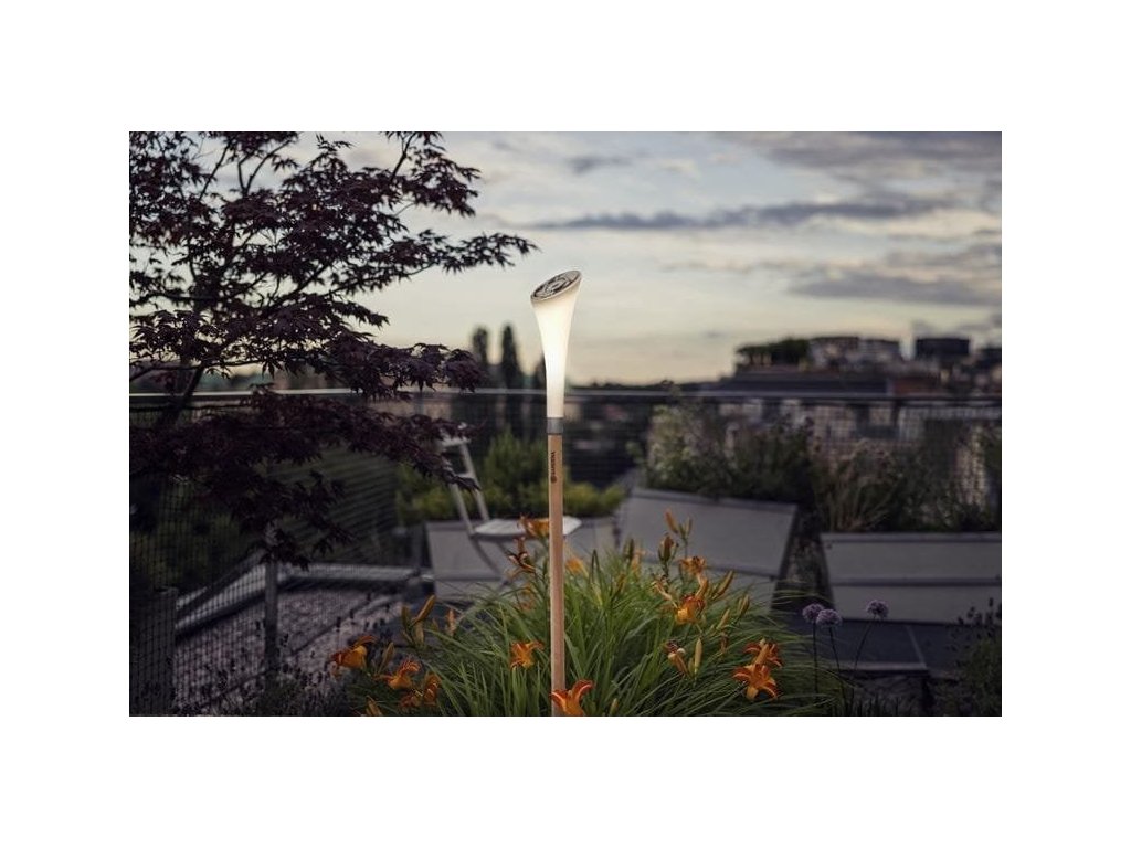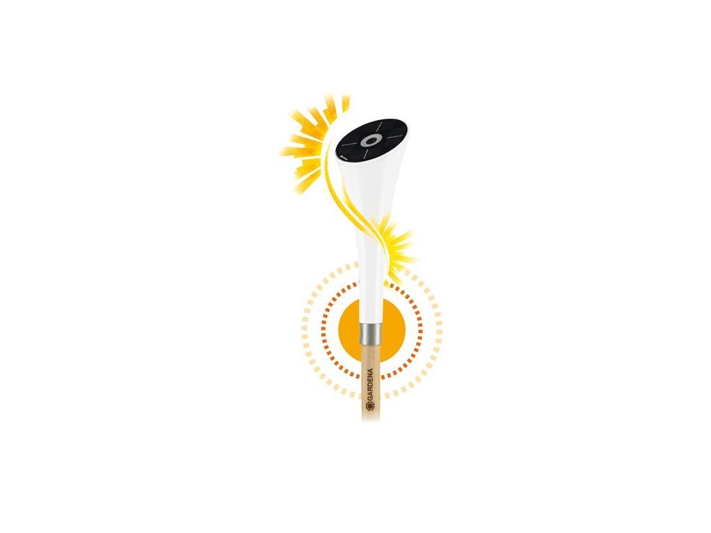 So solárnym svietidlom ClickUp! značky GARDENA si môžete užiť relaxačné večery vonku. Ide o ideálnu voľbu v prípade, že organizujete príjemný večer na záhrade s priateľmi alebo chcete mať na balkóne náladové osvetlenie. Solárne svietidlo je súčasťou celoročného lifestyle systému a je možné ho používať po celý rok. Vyniká praktickým pripojením na jedno kliknutie, takže solárne svietidlo ClickUp! pripojíte veľmi rýchlo a ľahko jedným kliknutím na násadu ClickUp! alebo upevnenie na balkón ClickUp! (každý výrobok sa predáva samostatne). Spojenie medzi týmito dvoma prvkami je bezproblémové a extrémne stabilné. Svietidlo zaujme svojim moderným a štýlovým designom. Polykryštalický solárny modul uchováva slnečnú energiu zo dňa a poskytuje rovnomerné svetlo po dobu približne šiestich hodín vo večerných hodinách. Jednoduché ovládanie, stačí zapnúť vypínač, aby bolo solárne záhradné svetlo pripravené na použitie a začalo za súmraku svietiť. Je aktívne, kým znovu nestlačíte tlačidlo, čím sa svietidlo vypne. Solárny modul je napájaný štandardnou Ni-MH batériou (veľkosť AA 2500 mAh 1,2V), ktorú je možné v prípade potreby vymeniť. GARDENA vám poskytuje na vysoko kvalitné solárne svietidlo ClickUp! z radu celoročného lifestylu systému záruku v trvaní 5 rokov. Pre záhradu, ktorá vám poskytne vonkajšiu večernú zábavu.Dodatočné parametre