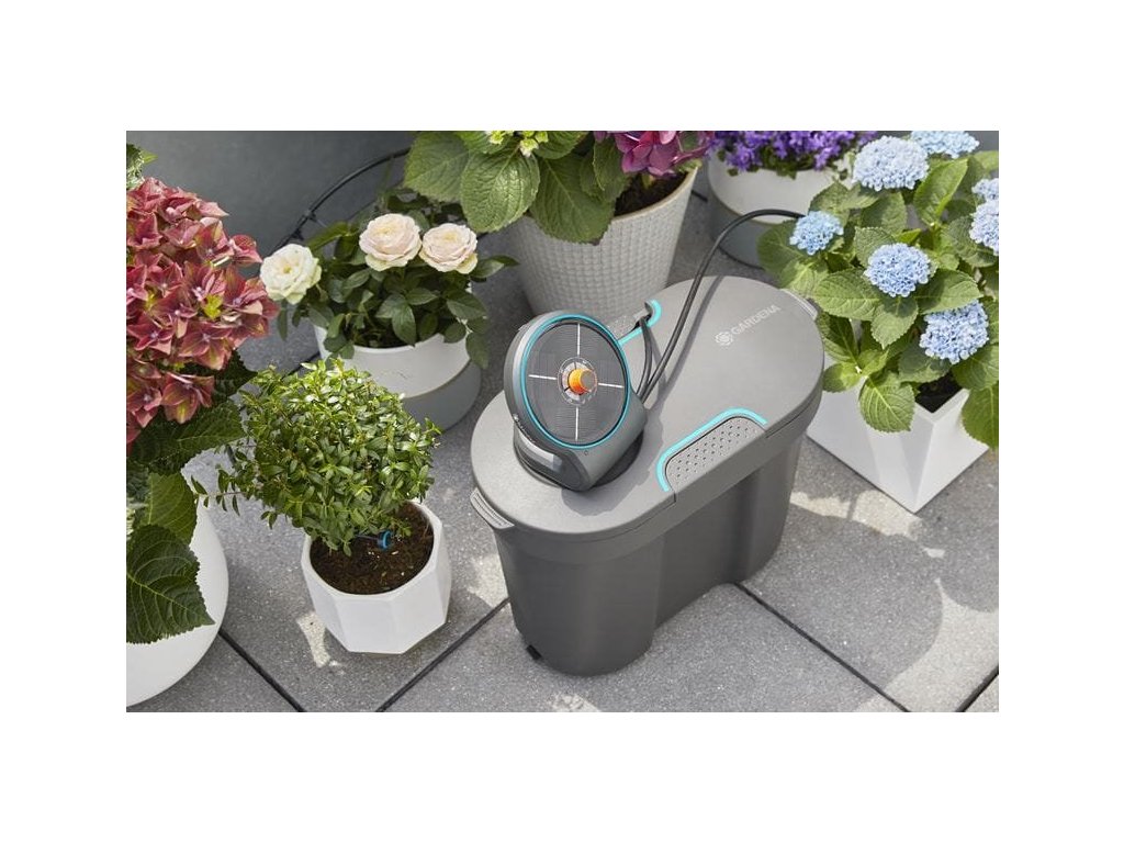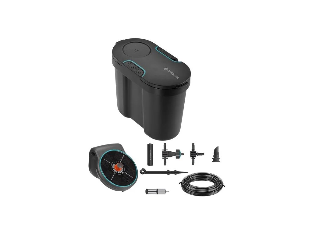 Starostlivosť o rastliny, keď nie ste doma. So solárnym zavlažovacím systémom GARDENA AquaBloom sú vaše balkónové a črepníkové rastliny v dobrých rukách - počas celej sezóny. Systém AquaBloom zavlažuje a stará sa o vaše rastliny, aj keď nie ste nablízku. Tento užitočný systém nevyžaduje na vašej záhrade alebo terase vodovodný kohútik ani zdroj energie. K dispozícii budete mať len ďalšiu nádobu na vodu. AquaBloom je kompletný zavlažovací systém pripravený na použitie, ktorý sa skladá z hlavnej jednotky 3 v 1. Kombinuje čerpadlo na čerpanie vody, riadiacu jednotku na definovanie harmonogramu zavlažovania a solárny panel, ktorý napája dodávané nabíjateľné batérie. Vďaka 14 preddefinovaným zavlažovacím programom s kvapkačmi s vyrovnávaním tlaku máte neustálu kontrolu nad zavlažovaním až 20 rastlín. Každá kvapkacia hlavica môže odvádzať až 300 ml vody. Nezabudnite, že si môžete flexibilne vybrať najvhodnejšie miesto pre AquaBloom. Vyberte pre regulátor slnečné miesto: zaveste ho na kvetináč, umiestnite na stôl alebo ho pripevnite na stenu. Inštalácia solárneho zavlažovacieho systému AquaBloom je jednoduchá a bez použitia náradia! Zbavte sa časovo náročného zavlažovania a užívajte si balkón a terasu s krásnymi a dobre udržiavanými rastlinami a kvetmi počas celej sezóny - bez ohľadu na to, ako dlho ste na dovolenke alebo na služobnej ceste. 1 x 10,5 l nádrž s možnosťou zväčšenia objemu pomocou koncovej zátky, 1 x základná jednotka s integrovaným čerpadlom a solárnym panelom, 20 x kvapkadiel s vyrovnávaním tlaku 0,5 l/h, 15 x 3/16" kolíky, 3 x nabíjateľné batérie AA, 1,2 V 2 400 mAh, 8 x 3/16" T-kus, 8 x 3/16 zástrčka, 1 x filter, 20 m 3/16" rúrky.Dodatočné parametre