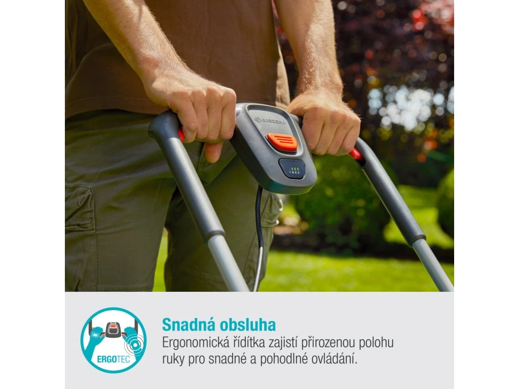 Vďaka ergonomicky tvarovanej rukoväti ErgoTec s prepínačmi na oboch stranách budú vaše ruky vždy v uvoľnenej pracovnej polohe. Kosačku tak môžete tlačiť dlhšie bez únavy. Jasne viditeľný LED indikátor na zariadení zobrazuje aktuálnu úroveň nabitia batérie.