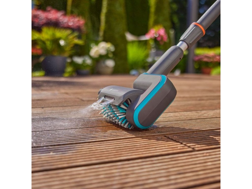 Jedna batéria na všetko: Čistič teras AquaBrush je napájaný batériou POWER FOR ALL a je kompatibilný so všetkými batériami Alliance Čistenie v jednom kroku: čistenie bez námahy s naším multifunkčným čističom poháňaným bateriou, na ktoré stačí stlačiť tlačidlo Balenie: 1 x GARDENA AquaBrush terasový akumulátorový multifunkčný čistič 03/18V P4A Solo, 1 × univerzálny valcový kartáč, 1 × silikónový ochranný kryt na akumulátor Akumulátorový multifunkčný čistič čistenie dreva, WPU, kameňa, teras, pergol a nerovných povrchov. Akumulátor, ktorý sa hodí všade Akumulátory sú súčasťou systému 18 V POWER FOR ALL a možno ich použiť vo viac ako 100 zariadeniach popredných značiek domácej a záhradnej techniky, ktoré sú členmi aliancie. Vďaka tomu nie je potrebné mať pre každý spotrebič samostatnú bateriu, čo je výhodné pre vašu peňaženku aj životné prostredie. Zjednodušte si upratovanie s akumulátorovým multifunkčným čističom AquaBrush Patio S naším inovatívnym multifunkčným čističom AquaBrush Patio Solo vás čaká čistenie bez námahy. Stačí pripojiť zdroj vody a stlačením tlačidla aktivovať rotujúci kartáč. Celý proces je veľmi jednoduchý a zaobíde sa bez káblov, ručnej práce a ďalšieho vybavenia. Táto súprava neobsahuje bateriu a nabíjačku. Optimalizovaný profil kartáča Objevte precízne čistenie: naša všestranná súprava ponúka optimalizovaný valcový profil kartáča na drevo, WPU a kamenné povrchy spolu s ergonomickou predlžovacou trubicou. Je ideálna na šetrnú starostlivosť o chúlostivé drevené terasy, schodiská a pergoly a obzvlášť vyniká pri čistení nerovných povrchov, kde preniká do drážok a štrbín, aby zabezpečila dôkladné a rovnomerné čistenie. Čistenie šetrné k zdrojom Náš inovatívny multifunkčný čistič bol navrhnutý s ohľadom na efektívne využívanie zdrojov. Preto je vybavený trojstupňovým systémom regulácie prietoku vody, ktorý zabezpečuje dôkladné čistenie pri optimálnom využívaní zdrojov. Pre väčšie pohodlie vám prípojka hadice na rukoväti umožňuje smerovať vodu cez vnútornú trubicu stlačením tlačidla, takže nie je potrebné pripájať hadicu priamo ku kartáčku. Ergonomická a nastaviteľná rukoväť Multifunkčný čistič navrhnutý s ohľadom na pohodlie a komfort užívateľa je vybavený ergonomickou a nastaviteľnou rukoväťou. Či už chcete niečo rýchlo vyčistiť, alebo sa púšťate do väčšieho projektu, rukoväť možno ľahko nastaviť do preferovanej pracovnej polohy, čím sa zníži vaša námaha a zabezpečí sa pohodlné držanie. Ergonomická a nastaviteľná rukoväť vám ponúka optimálne ovládanie a pohodlie, ktoré vám uľahčia čistenie.Dodatočné parametre