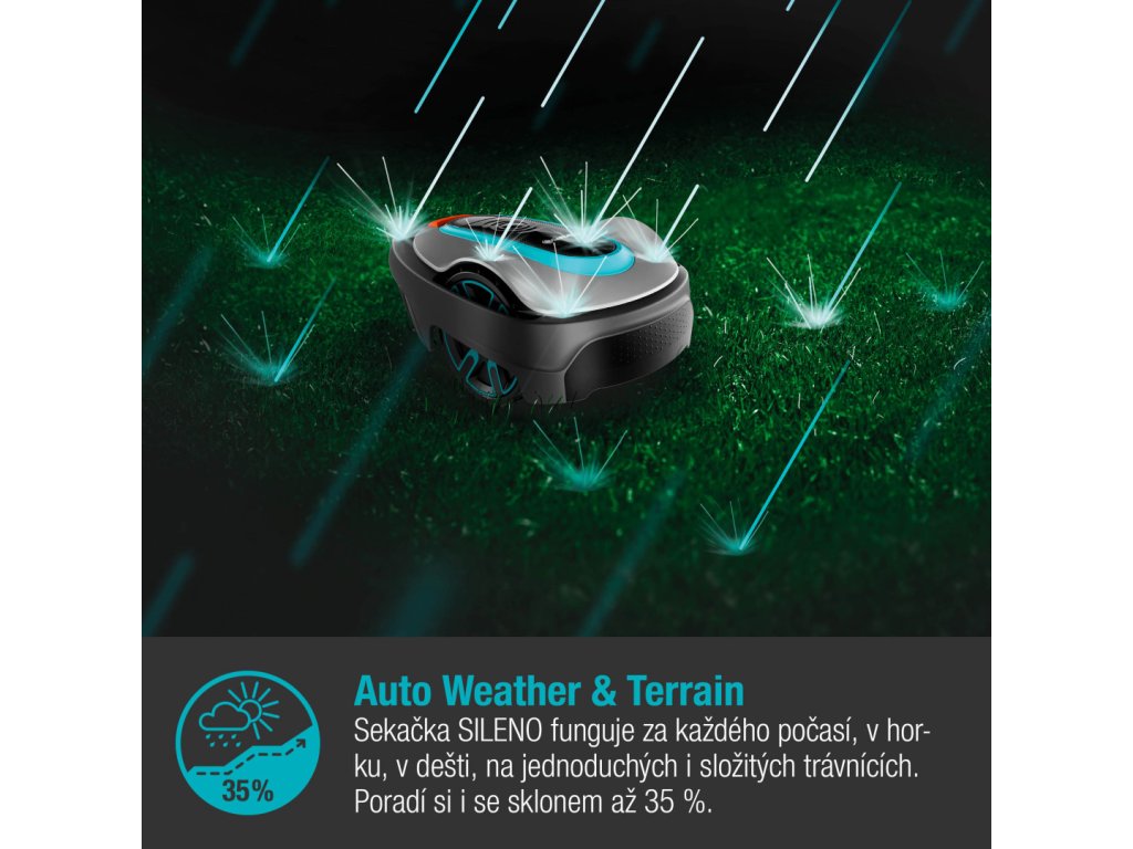 Starostlivosť o trávnik môže byť taká jednoduchá a nenáročná aj v malých mestských záhradách! GARDENA SILENO city so systémom SensorCut pokosia váš trávnik presne a spolehlivo a výsledkom je čisto pokosený trávnik. Môžete si tak užívať nielen voľný čas, ale aj dokonale upravený trávnik. Sekačka SILENO city je vhodná pre malé trávnaté plochy do 400 m2. Ľahko si poradí s trávnikmi so sklonom do 25 %, ako aj s úzkymi koridormi a tesnými priechodmi od 60 cm šírky medzi ohraničujúcimi vodidlami. Otočné zadné koleso poskytuje robotickej sekačke zvýšenú pohyblivosť a manévrovateľnosť – ideálne pre malé a úzke záhrady. Nová mestská sekačka SILENO pracuje a kosí trávnik za každého počasia a je taká tichá, že ju takmer neslyší. Po dokončení sa automaticky vráti do nabíjacej stanice. Počas inštalácie vás asistent programovania prevedie nabídkou a samostatne vypočíta plán kosenia. Časy kosenia sa dajú naprogramovať aj ľubovoľne. Vďaka tomu je robotická sekačka v prevádzke len vtedy, keď ju potrebujete. Produktivita Pracovný výkon 400 m2 ±20 % Systém nabíjania Automatický Maximálny sklon v pracovnej oblasti 35 % Maximálny sklon na hraničnom drôte smyčky 10 % Výrobok Ovládanie prostredníctvom aplikácie GARDENA Bluetooth® (vyžaduje sa online registrácia, pozri popis) firmvéru cez USB Index ochrany (kód IP) IPX5 Napájanie a nabíjanie Typ batérie Lion Typický čas nabíjania 75 min Priemerný čas kosenia na jedno nabitie 65 min Priemerná spotreba energie pri maximálnom využití 3 kWh Motor a systém kosenia Systém kosenia 3 rotačné nože ostré ako britva Výška kosenia, cm 16 cm Oboustranné otáčanie žacieho kotúča Áno Hlučnosť Vnímaná hladina hluku 57 dB(A) Bezpečnostná funkcia Alarm Žiadny Kód PIN Áno Snímač zdvíhania Áno Snímač naklonenia Áno Inštalačné príslušenstvo Hraničný vodič smyčky 1 200 ks Celkové rozmery Rozmery výrobku, DxŠxV 55x38x23 cm Hmotnosť, kg 7,3 kgDodatočné parametre