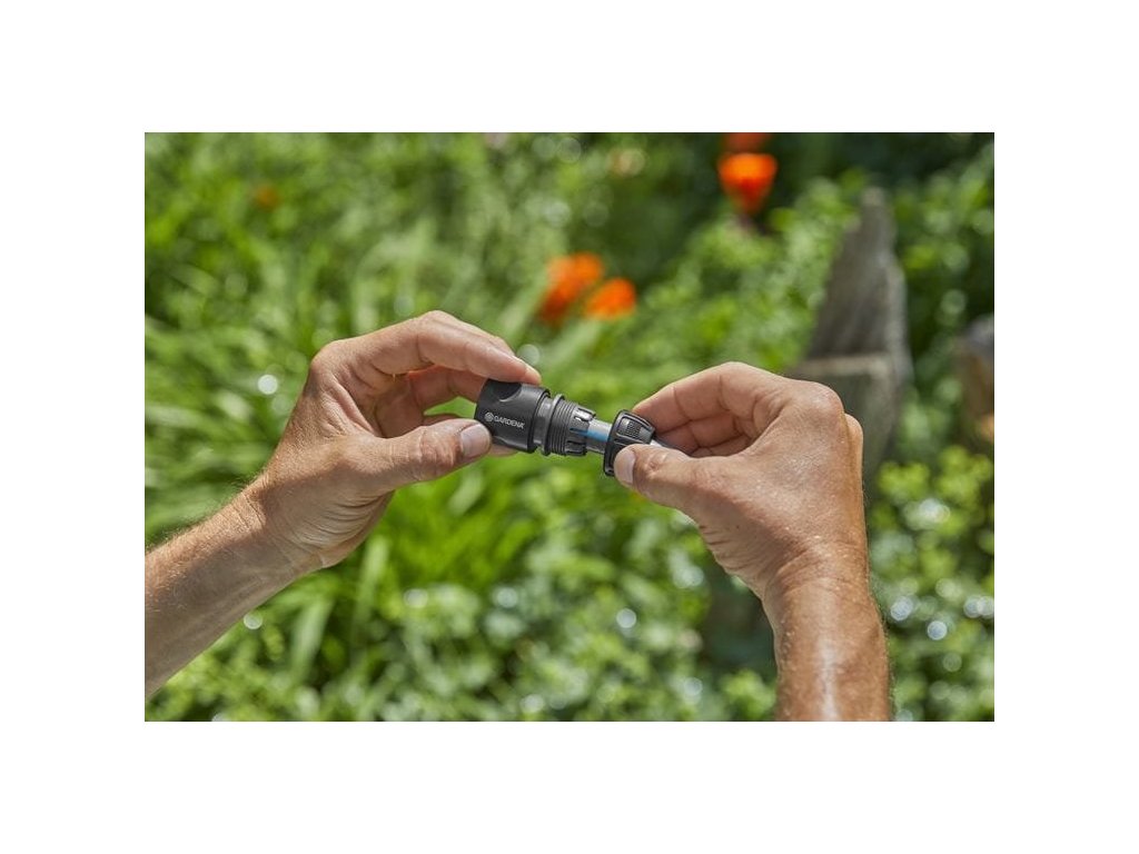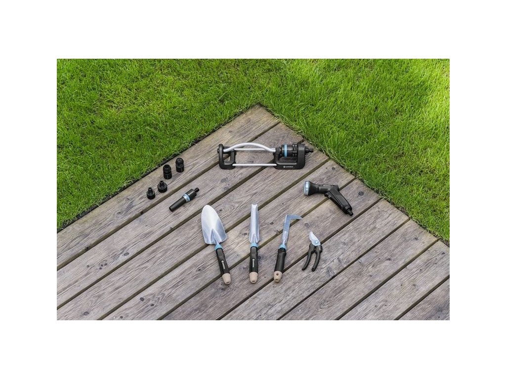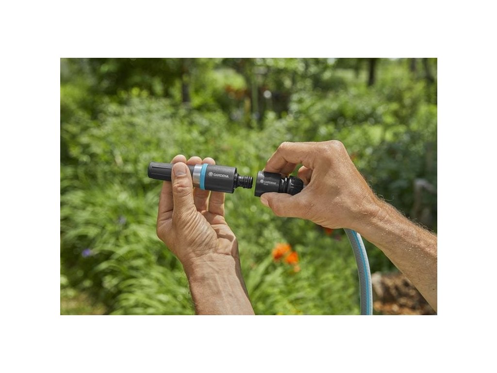Základná súprava GARDENA EcoLine je ideálnou kombináciou udržateľnosti a funkčnosti pre vašu záhradu. Štartovacia súprava s čistiacim postrikovačom, prípojkou na vodovodný kohout, adaptérom, rýchlospojkou a stopspojkou zabezpečuje bezpečné pripojenie záhradnej hadice k vodovodnému kohoutku. Viac ako 90% plastov použitých v súprave bolo vyrobených z recyklovaného materiálu, väčšinou z domového odpadu. Táto súprava nielenže vyzerá elegantne, ale vďaka kvalitnému spracovaniu má aj dlhú životnosť. Okrem recyklovaného plastu sa na výrobu kovových častí použilo 35 percent recyklovanej nehrdzavejúcej ocele. Nenápadný, ale elegantný dizajnový koncept dodáva základnému vybaveniu štýlový a nadčasový vzhľad, ktorý sa dokonale hodí do vašej záhrady alebo na terasu. Postrikovač 2 v 1 ponúka optimálny prúd vody pre rôzne situácie - či už ide o prúd vody na čistiace práce alebo jemnejší prúd vody na zavlažovanie; preud vody je plynulo nastaviteľný. Stopspojka, ktorá je súčasťou súpravy, umožňuje meniť nástavec, napríklad z postrikovača na rozprašovaciu sprchu alebo zavlažovač, bez toho, aby ste museli ísť ku kohoutku - po odstránení koncového nástavca sa voda automaticky zastaví a po nasadení nového koncového nástavca sa opäť spustí. Súprava EcoLine od spoločnosti GARDENA je kompatibilná s hadicami 1/2" - 5/8" (13-15 mm) a je vhodná aj pre vodovodné kohoutky so závitom 26,5 mm (G 3/4") a 33,3 mm (G 1"). Súprava je vybavená inteligentnou funkciou Anti-Splash, ktorá umožňuje cielený prietok vody pri plnení konvíc alebo vedier bez hadice, bez rozstrekovania vody. Základná súprava EcoLine je odolná voči UV záreniu a mrazu, takže ju môžete nechať venku po celý rok. Je vyrobená v Nemecku a GARDENA na ňu poskytuje päťročnú záruku. Prirodzená voľba pre vášnivých záhradkárov. ReTh!Nk - nová súprava EcoLine. Vyrobené v súlade s principmi trvalo udržateľného rozvoja. Estetický dizajn. Odolná konštrukcia. Špecifikácia Použitie Pre závitové kohoutky 33,3 mm (G 1") a 26,5 mm (G 3/4") a pre hadice 13 mm (1/2") a 15 mm (5/8") Súprava so systémovými dielmi 1 x čistiaci postrikovač EcoLine, 1 x stopspojka EcoLine, 1 x stopspojka EcoLine, 1 1 x adaptér EcoLine Ochrana proti zamrznutiu ÁnoDodatočné parametre