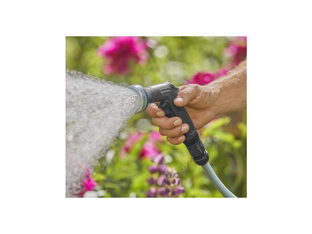 Oscilační zavlažovač EcoLine od spoločnosti GARDENA zavlažuje obdĺžnikové trávniky alebo kvetinové záhony s plochou od 90 do 220 m2 rovnomerne a presne - bez kaluží. Je vyrobený z viac ako 65 % recyklovaného materiálu z každodenného odpadu z domácnosti; predstavuje udržateľné riešenie na zavlažovanie trávnika počas horúcich letných dní. Hliníková trubka zavlažovača obsahuje viac ako 25 percent recyklovaného materiálu. Integrované kovové prvky zvyšujú pevnosť a odolnosť zavlažovača a zároveň vyzerajú štýlovo. Postrikovač jednoducho umiestnite na trávnik s hadicou pripojenou ku kohoutku a vypusťte vodu. Dosah zavlažovača sa potom dá jednoducho nastaviť od 7 do 17 metrov. Oscilační zavlažovač EcoLine má maximálny dosah 13 metrov. Či už chcete zavlažovať malý záhon alebo veľký trávnik – tento oscilačný zavlažovač vám umožní oboje. Zavlažovač je odolný voči UV záreniu a mrazu, takže ho môžete nechať venku po celý rok. Ďalším prvkom, ktorý podporuje odolnosť výrobku, sú šikovné a rýchle nástroje na čistenie: zabudovaný odnímateľný filter zabraňuje zaneseniu zavlažovača nečistotami. Môžete ho sami vybrať a jednoducho vyčistiť pod tečúcou vodou. Ak sa na tryskách usadí vodný kameň, môžete otvory rýchlo vyčistiť pomocou priloženej čistiacej ihly. Oscilační zavlažovač EcoLine je vyrobený v Nemecku a jeho kvalitu podčiarkuje aj päťročná záruka výrobcu GARDENA. Prirodzená voľba pre vášnivých záhradkárov. ReTh!Nk - nový zavlažovač EcoLine. Vyrobený v súlade s principmi trvalo udržateľného rozvoja. Esteticky navrhnutý. Odolná konštrukcia. Používajte Použitie Ideálne na zalievanie rastlin v kvetináčoch a na záhonoch Tvar vodného proudu Mäkký postrikDodatočné parametre