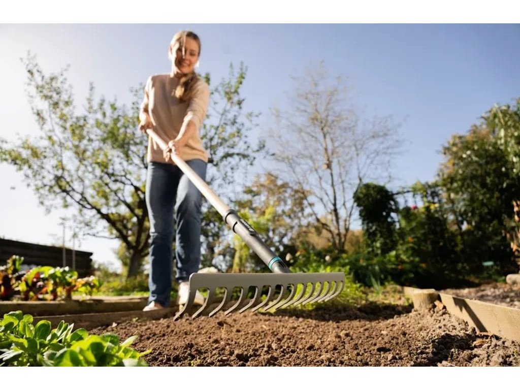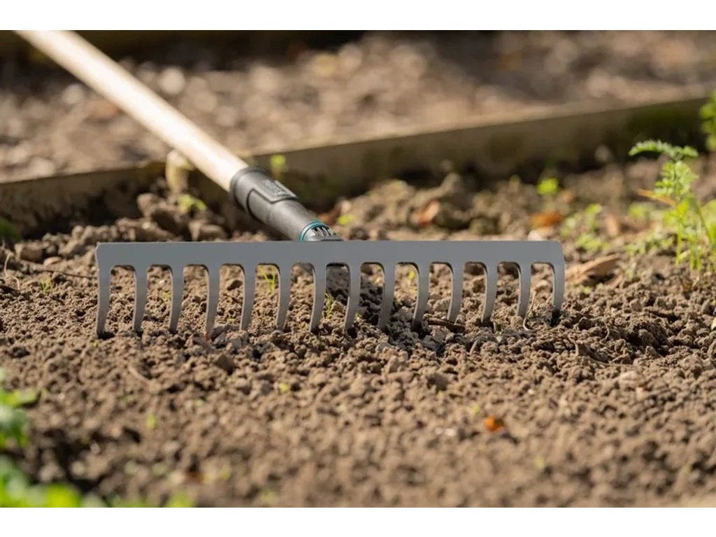 Hráble PureLine od spoločnosti GARDENA možno používať na hrabanie, zarovnávanie záhonov a spracovanie pôdy v záhrade.