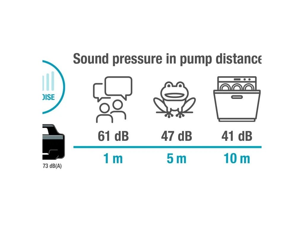 Záhradné čerpadlo 5000 Silent bolo navrhnuté tak, aby znížilo hluk spojený s čerpaním. Tichá technológia produkuje hluk iba 61 dB vo vzdialenosti 1 m a vo vzdialenosti 10 m klesá na 41 dB. To znamená, že čerpadlo je sotva počuteľné.