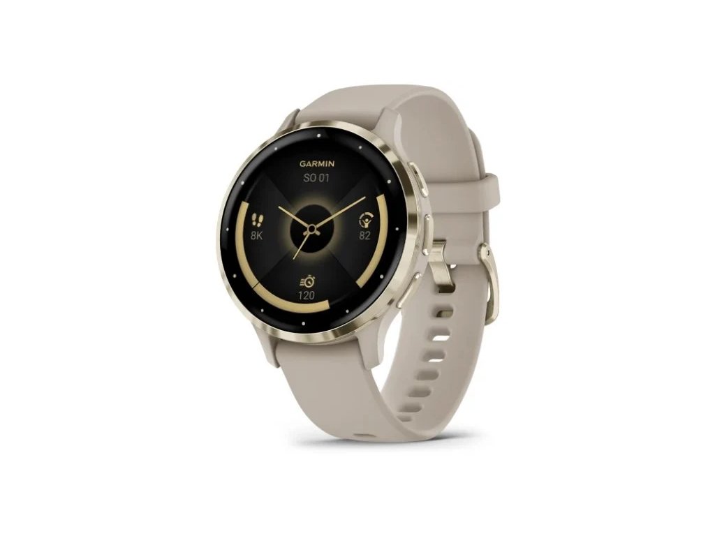 Garmin Venu 3S, luneta z nehrdzavejúcej ocele Soft Gold, francúzske sivé puzdro, silikónový remienok