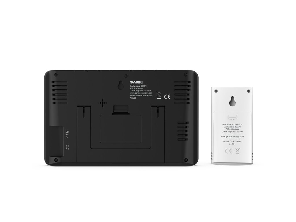 Presná meteorologická stanica s inverzným farebným VA displejom s časom a dátumom riadeným rádiovým signálom DCF-77, budíkom, vnútornou teplotou, relatívnou vlhkostou, barometrickým tlakom a bezdrôtovým senzorom na meranie vonkajšej teploty a relatívnej vlhkosti. Na dosiahnutie vysokej presnosti merania teploty a relatívnej vlhkosti sa používajú špičkové snímače švajčiarskej značky SENSIRION Inverzný farebný VA displej s rozmermi 169 x 95 mm s trvalým osvetlením pri napájaní sieťovým adaptérom alebo s krátkodobým osvetlením na 10 s pri napájaní batériami. 14 mm, dátum 8 mm, zkratka názvu dňa 9 mm, vnútorná a vonkajšia teplota 20,5 mm, vnútorná a vonkajšia relatívna vlhkosť 20 mm, barometrický tlak 6,5 mm, index tepla a rosný bod 7 mm čas a dátum riadený signálom DCF-77 s manuálnym nastavením 1 24-hodinový formát zobrazenia času Časové pásmo nastaviteľné od -12 do +12 hodín skratky názvu dňa v slovenčine (angličtina, nemčina, holandčina, maďarčina, polština a italčina) Budík s funkciou odloženia budenia po 5 minútach Signál budenia sekundu, 10 sekúnd 4 pípnutia za sekundu, potom stále pípanie 6 ikon predpovedia počasia (jasno (slnečno), polooblačno, oblačno, déšť, burky, sneh) barometrického tlaku (hPa alebo inHg) možnosť nastavenia relatívneho barometrického tlaku graf vývoja barometrického tlaku alebo teploty (meranej bezdrôtovým snímačom na kanáli 1) alebo relatívnej vlhkosti (meranej bezdrôtovým snímačom na kanáli 1) za posledných 72 hodín šípky trendu pre barometrický tlak, teplotu a relatívnu vlhkosť (Heat Index) a rosného bodu (Dew Point) pamäť pre maximálne a minimálne namerané hodnoty teploty a vlhkosti možnosť použitia až 3 bezdrátových snímačov GARNI 063H (jeden snímač je súčasťou dodávky) funkcia automatického prepínania kanálov, na ktorých sa zaznamenávajú bezdrôtové snímače. ikona príjmu signálu bezdrôtového snímača zobrazenie fázy mesiaca port USB na nabíjanie mobilných zariadení (len keď je hlavná jednotka napájaná sieťovým adaptérom), maximálny nabíjací proud 1 000 mA Ikona slabej batérie pre vonkajší snímač a hlavnú jednotku Napájanie sieťovým adaptérom alebo batériami možnosť postavenia alebo zavesenia farba čierna Bezdrôt (odolný voči striekajúcej vode) LCD displej 17 x 25 mm Veľkosť číslic - teplota a relatívna vlhkosť 7 mm meranie teploty a relatívnej vlhkosti možno postaviť alebo zavesiť farba biela Obsah balenia: 1 x hlavná jednotka GARNI 618B holandský, polský a maďarský návodDodatočné parametre