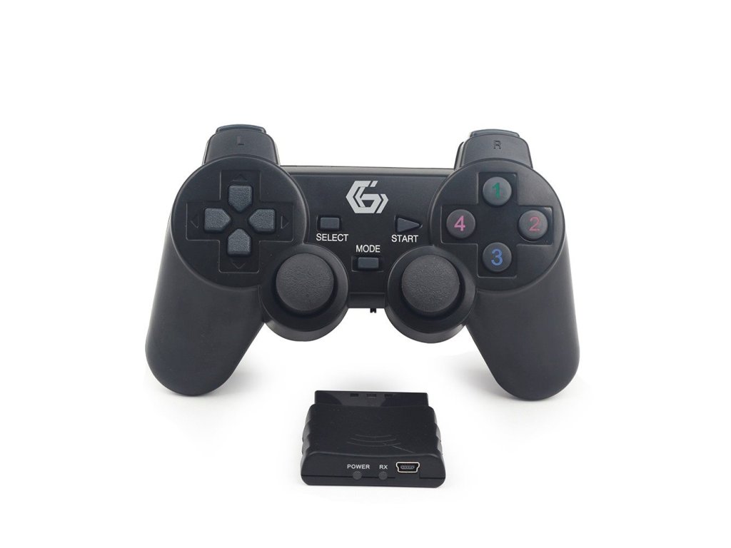 Bezdrôtový gamepad pre PC/PS2/PS3 4-cestný D-pad, 12 tlačidiel Vibračný Bezdrôtový 2x analóg Funguje vo všetkých PC hrách, podporujúcich vstup pre gamepad Výdrž až 30 h (s vibráciami) alebo až 100 h (bez vibrácií), napájanie 2x AAADodatočné parametre