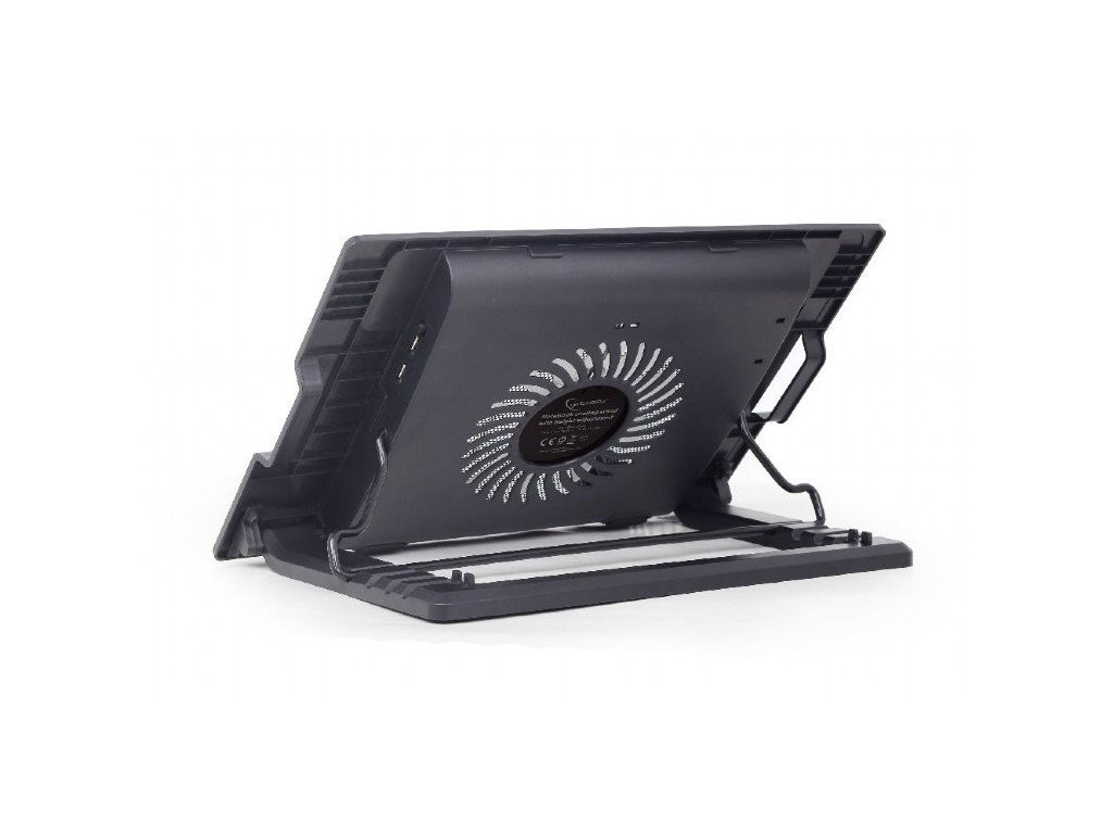 Chladiaci stojan na notebook s nastavením výšky Praktický stolový stojan pre akýkoľvek notebook (max. 17") Ergonomický dizajn, nastaviteľný až do 45 stupňov pre optimálny uhol pohľadu Umožňuje nastavenie polohy obrazovky v úrovni očí, čo pomáha znižovať namáhanie krku Tichý 150 mm ventilátor zabraňuje prehrievaniu notebooku chladiaceho ventilátora Materiál: kov a plast Chladiace ventilátory: 1 ks 150 x 150 x 20 mm, 800...1500 ot/min, prietok vzduchu minimálne 20 CFM (± 10 %), hlučnosť 10 dBA Nastavenie výšky: 5 stupňov (5/20/30/40/45 stupňov (DxŠxV): 370 x 265 x 33 mm (zložené) Spotreba energie: 5 V DC do 0,35 A Čistá hmotnosť: 0,66 kgDodatočné parametre