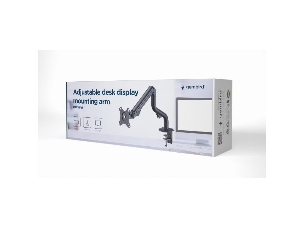 GEMBIRD Držiak monitora na stôl Držiak monitora na stôl s jedným ramenom Rameno umožňuje otáčať, vysúvať, zasúvať alebo nakláňať displej a umožňuje otáčať displej z režimu na šírku do režimu na výšku atď. Umožňuje jednoduché ergonomické polohovanie na zníženie záťaže Funguje s takmer akýmkoľvek monitorom LCD (max. 32" 2 - 8 kg Pevná stolová svorka alebo priechodka na jednoduchú a bezpečnú montáž na stôl Zabudovaný manažment káblov pre organizovaný a prehľadný pracovný priestor Kompatibilný so štandardom VESA (100 x 100 mm a 75 x 75 mm)Dodatočné parametre