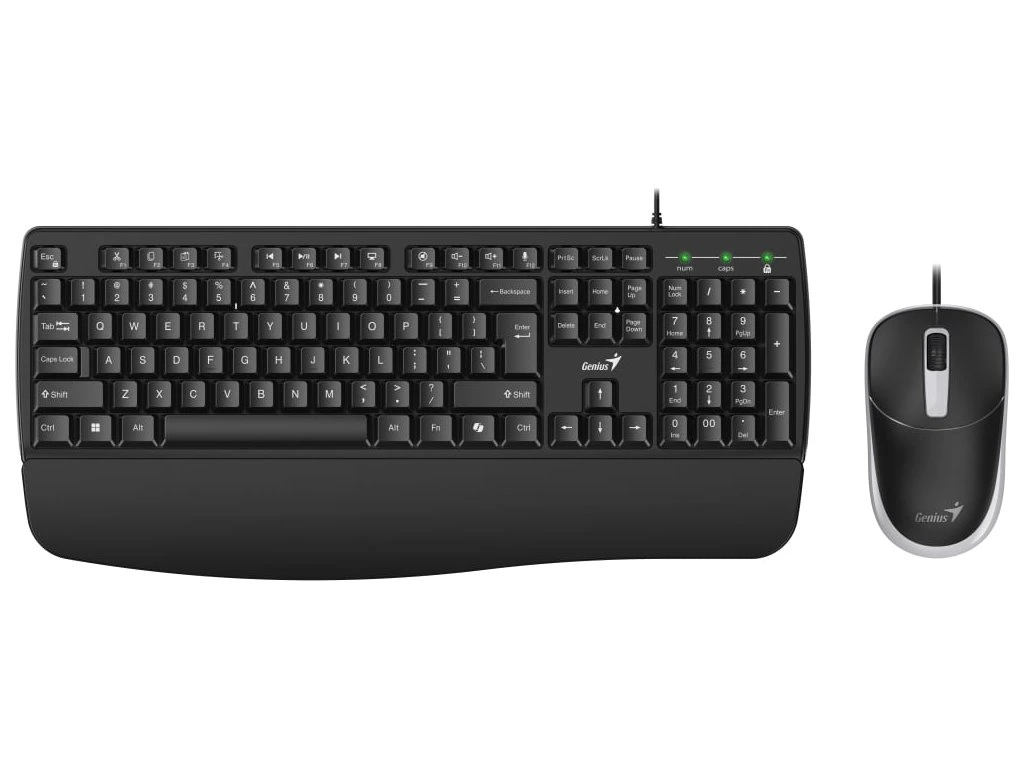 K dispozícii sú aj klávesové skratky na základné textové, tabuľkové a multimediálne operácie. Samozrejmosťou je aj numerický blok na zadávanie čísel. Konštrukcia odolná proti poliatiu chráni klávesnicu v prípade náhodného poliatia. Optická myš Genius s rozlíšením 1200 DPI citlivo a presne reaguje na pokyny pri ovládaní aplikácií, surfovaní po internete a iných pracovných činnostiach. Pripojenie Plug & Play poskytuje okamžité káblové pripojenie bez potreby inštalácie ďalších ovládačov.