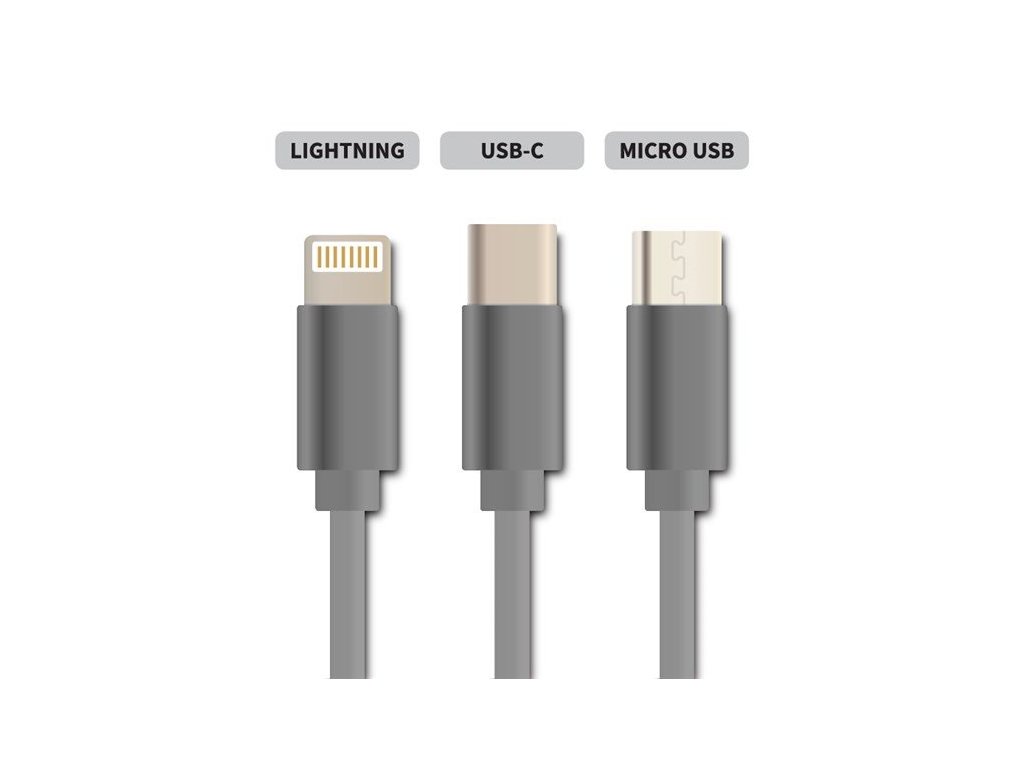 Geti kábel GCU 04 USB 3v1 strieborný samonavíjací