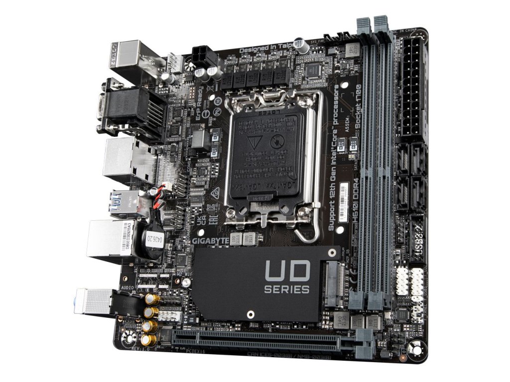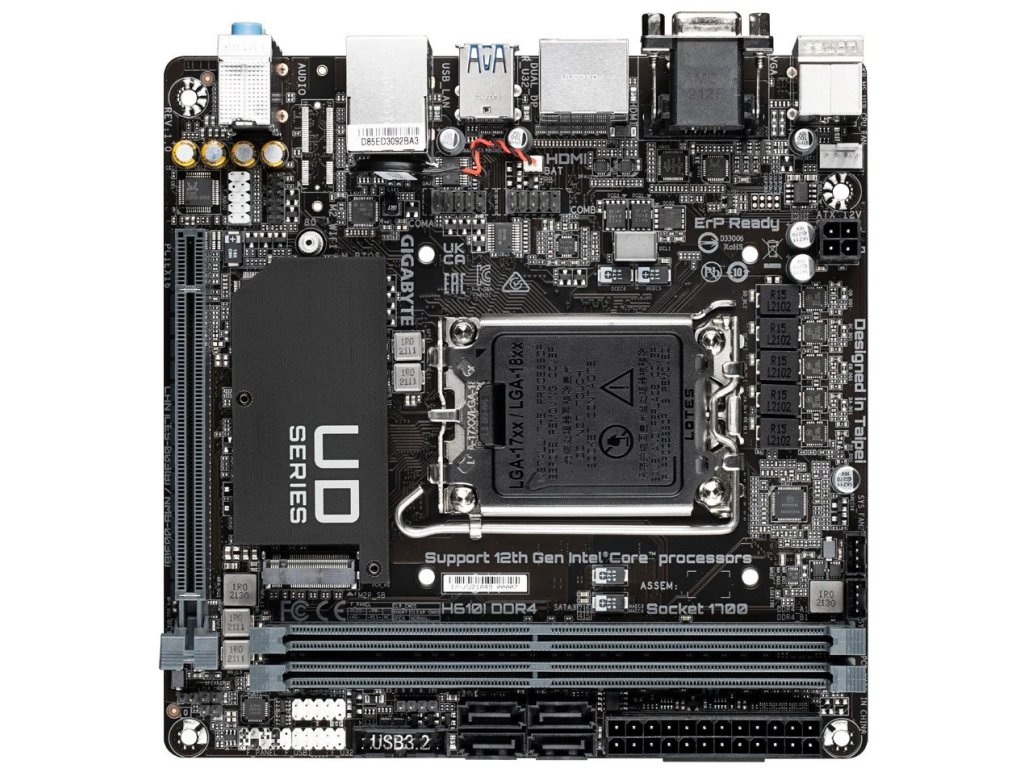 Čipová súprava: Intel H610 Express Chipset Rozmerový formát: Rozmery: Mini-ITX (17,0 cm x 17,0 cm) 3200/3000/2933/2666/2400/2133 MHz Maximálna veľkosť pamäte: 64 GB Podpora typov pamäte: ECC, XMP Grafická karta: (Intel HD Graphics) 1 x port D-Sub - 1920x1200@60 Hz. 4096x2160@60 Hz 2 x DisplayPort 1.2 - 4096x2304@60 Hz Zvuková karta: Realtek Audio CODEC 2/4/5.1/7.1-kanálový Síťová karta: čip Intel GbE LAN (1 Gb/s/100 Mb/s) rozlišením x16 (štandard PCI Express 4.0) SATA: 4 x konektory SATA 6 Gb/s M.2: 1 x konektor M.2 USB: Interný: 1 x záhlavie USB 3.2 Gen 1 2 x záhlavie USB 2.0/1.1 2 x porty USB 3.2 Gen 1 4 x porty. 24-pinový hlavný napájací konektor ATX 1 x 4-pinový napájací konektor ATX 12V 1 x konektor ventilátora CPU 2 x záhlavie systémového ventilátora 1 x záhlavie RGB LED pásu 1 x konektor M.2 Socket 3 4 x konektory SATA 6 Gb/s 1 x záhlavie na prednom paneli 1 x audio. 1 2 x záhlavie USB 2.0/1.1 1 x hlavička modulu dôveryhodnej platformy (len pre modul GC-TPM2.0 SPI/GC-TPM2.0 SPI 2.0) 2 x hlavičky sériového portu 1 x prepojka Clear CMOS 1 x záhlavie pre narušenie šasi Externé por porty USB 3.2 Gen 1 4 x porty USB 2.0/1.1 1 x port D-Sub 2 x DisplayPort 1 x port HDMI 2.0 1 x port RJ-45 3 x audio konektory BIOS: AMI UEFI BIOS, 1 x 256 Mbit flash Webová stránka výrobcu: http://www.gigabyte.com/Motherboard/H610I-DDR4-rev-10#kfDodatočné parametre