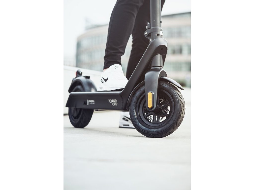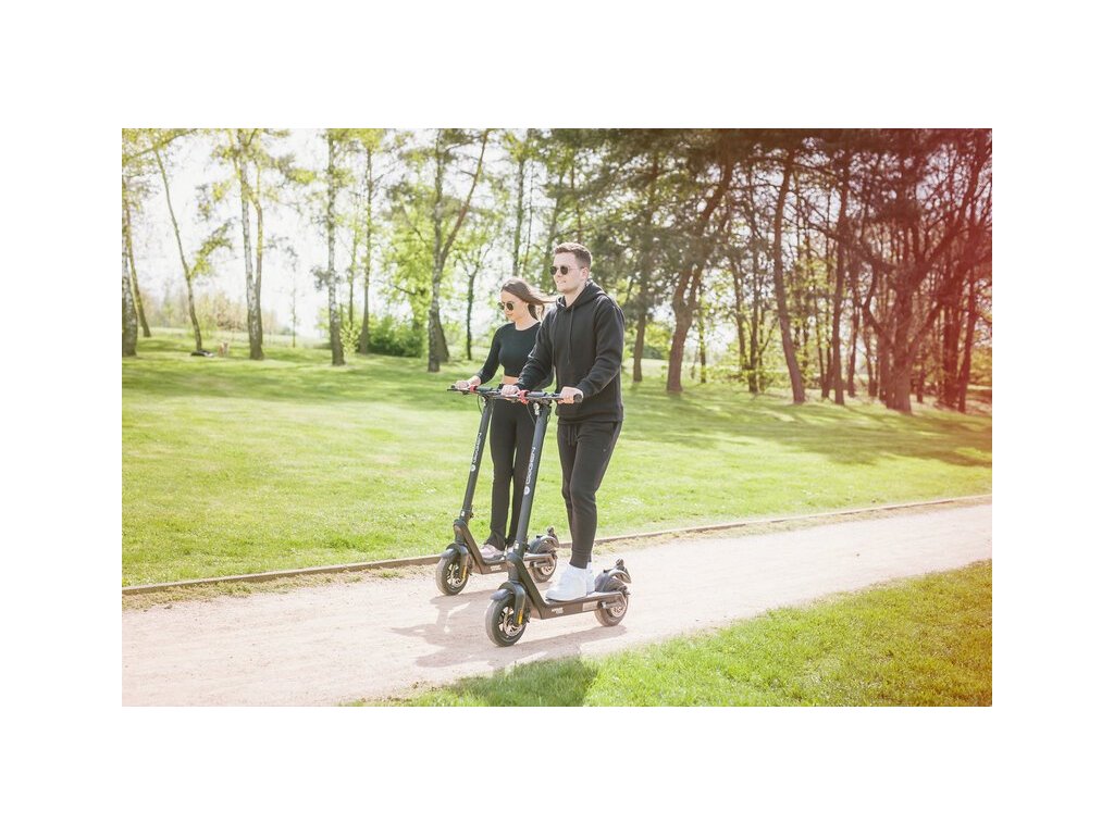Výkonný motor a rýchlosť až 40 km/h Elektrická kolobežka GoGEN VOYAGER POWER ponúka výnimočný výkon motora až 550 W pre plynulú jazdu. V kombinácii s rýchlosťou až 40 km/ha tromi jízdnými režimami sa elektrická kolobežka stáva ideálnou voľbou na rýchlu a pohodlnú prepravu na kratšie vzdialenosti. Je poháňaná zadným kolom, ktoré ponúka lepšiu ovládateľnosť a jízdné vlastnosti najmä v stúpaniach. Výrobné nastavenie maximálnej rýchlosti je 25 km/h. Ak nastavíte maximálnu rýchlosť na 40 km/h, kolobežku možno používať len na neverejných, uzavretých cestách. Kolobežka sa pri tomto nastavení nesmie prevádzkuť na verejných komunikáciách. Vymeniteľná batéria s vysokou kapacitou Vymeniteľná lithium-iónová batéria je umiestnená v nášľapnej ploche a ponúka kapacitu 13 Ah a výkon 624 Wh pri napätí 48 V. Vďaka tejto vysokej kapacite môže elektrická kolobežka nabídnúť dojazd až 65 km na jedno nabitie, takže je ideálna na pravidelné dochádzanie do práce a dlhšie. Pohodlné cestovanie Elektrická kolobežka GoGEN VOYAGER POWER ponúka veľký komfort pri cestovaní. S nosnosťou až 120 kg je ideálna takmer pre každého vrátane väčších ľudí. Kolesá s priemerom 10 palcov sú nafukovacie, čo umožňuje pohodlnú a ľahkú jazdu aj pri prekonávaní nerovností terénu. Súčasťou je aj tempomat na udržiavanie rýchlosti, ktorý zabezpečuje plynulú a stabilnú jazdu na rovnom teréne aj do kopca. Kotúčové brzdy na predných a zadných kolesách zabezpečujú bezpečné zastavenie. Voliteľná zadná elektronická brzda je vybavená okruhom na rekuperáciu brzdnej energie. Mimoriadna starostlivosť aj po kúpe Chceme, aby bol váš zážitok z používania elektrickej kolobežky GoGEN VOYAGER POWER čo najlepší. Preto sa na všetky elektrické kolobežky GoGEN poskytuje predĺžená záruka 5 rokov na ich motor. Stačí zaregistrovať svoj nákup na webovej stránke www.gogen.cz. Myslíme na vás aj v ďalšej sezóne. Po zimnej prestávke vám bezplatne pripravíme kolobežku na jarné jazdy. Zároveň získate posezónny servis pre GoGEN VOYAGER POWER S911. Ako a kedy absolvovať prehliadku, sa dozviete tu. ZÁKLADNÉ PARAMETRE Výkon motora 550 W Kapacita batérie 13 Ah / 48 V Čas nabíjania 8 - 9 h Typ batérie: Li-ion Stupeň ochrany IPX4 Priemer kolies 10" Brzdy: predné kotúčové, zadné kotúčové a elektronické s rekuperačním brzdením, nožná brzda Hmotnosť 23 kg JAZDNÉ PARAMETRE Maximálna rýchlosť 40 km/h Dojazd 65 km Maximálny sklon: 15° Maximálna nosnosť 120 kg DALŠIE PARAMETRE Dva jazdné režimy a režim chôze Tempomat Multifunkčný displej Predné a zadné (brzdové) LED svetlo Šírka riadidiel 5 15+ 24-mesačná záručná doba sa nevzťahuje na zníženie kapacity batérie alebo akumulátora (skrátenie životnosti výrobku) spôsobené opotrebovaním batérie alebo akumulátora v dôsledku bežného používania výrobku Maximálny dojazd závisí od hmotnosti užívateľa, teploty, rýchlosti, štýlu jízdy, povrchu a ďalších podmienok.Dodatočné parametre