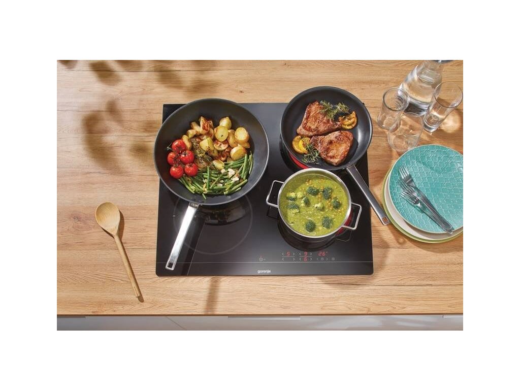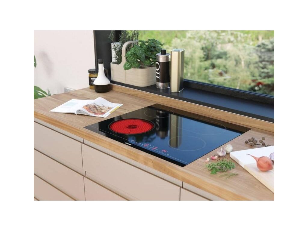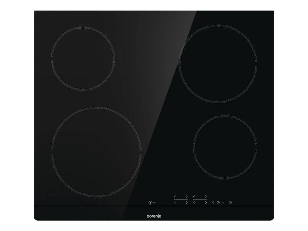 Sklokeramická varná doska - šírka 59,5 cm - 4 varné zóny - pripojenie 400 V - zaoblené hrany - dotykové ovládanie - technológia Hi-Light - maximálny výkon za veľmi krátky čas - funkcia StayWarm - udržuje stabilnú teplotu 70 °C - funkcia StopGo - pozastavenie varenia - funkcia BoilControl - automatický rýchly ohrev - bezpečnostné prvky: detská poistka, ukazovateľ zvyškového tepla - V × Š × H: 5,4 × 59,5 × 52 cmGorenje Essential CT41SC, čierna