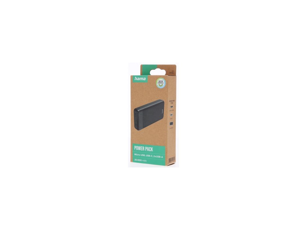 Hama Eco Power 20, powerbanka, 20000 mAh, 2 A, 2 výstupy: 2x USB-A