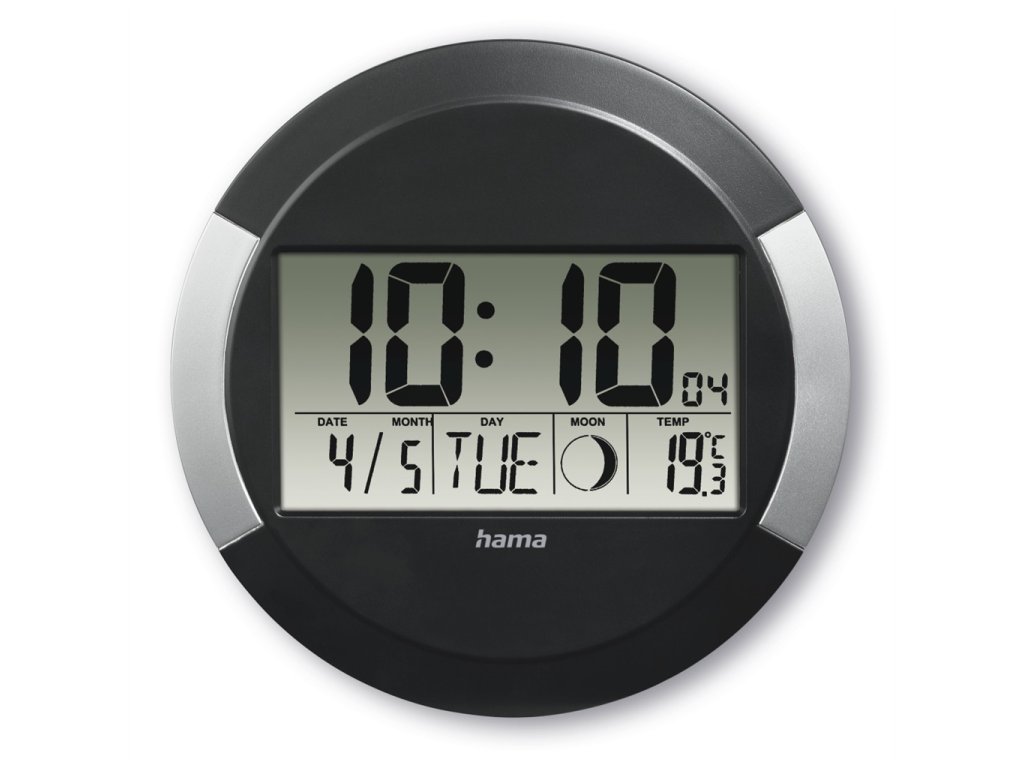 - nástěnné hodiny řízené rádiovým signálem DCF (automatické nastavení času podle nejpřesnějších hodin světa) - digitální zobrazení času, data, dne v týdnu, vnitřní teploty a fáze měsíce - možnost manuálního nastavení časového pásma, pokud se čas přijatý rádiovým signálem odlišuje od času v časovém pásmu - indikace slabé baterie - možnost postavení na rovnou plochu (stůl, police apod.) dík vyklápěcí nožce, nebo zavěšení na zeď pomocí otvoru na zadní straně - výška číslic: hodiny - 5,3 cm; datum s teplotou 2,3 cm - rozměry (průměr x hloubka): 24,5 x 1,5 cm - hmotnost: 409 g - baterie: 1 AA Mignon baterie (součást balení) - materiál: plast - barva: černá/stříbrná - balení: papírová krabička s certifikovaným původem dřeva, bez obsahu plastů Hodiny, budík, datum: - možnost přepnutí mezi 12 a 24hodinovým formátem zobrazení času - zobrazení času: hodiny, minuty, sekundy - zobrazení data: den, měsíc, den v týdnu - výběr ze 6 jazyků pro zkratku dne v týdnu (angličtina, němčina, francouzština, italština, španělština, holandština) Teploměr: - možnost přepnutí mezi zobrazením teploty ve °C nebo °F - zobrazení vnitřní teploty - rozsah měření teploty: 0 °C až 50 °C Obsah balení: - 1 nástěnné hodiny Ischia - 1 baterie AA Mignon - 1 návod k použitíDodatočné parametre