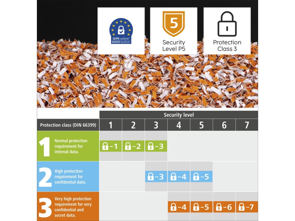 - mikro skartovačka s krížovým rezom pre domácnosť a kanceláriu - Skartovanie 8 listov papiera DIN A4 (80 g/m2) naraz - vhodný aj na skartovanie plastových kariet - skartovanie plastových kariet cez otvor na papier - bezpečné zničenie důvěrných údajov podľa normy DIN 66399; stupeň zabezpečenia P5 je vhodný na zničenie osobných údajov v papierovej forme podľa GDPR (všeobecné nariadenie o ochrane údajov) - kompaktný dizajn pre úsporu miesta - rezanie papiera na extrémne malé kúsky (2x12 mm), čím sa maximalizuje kapacita zásobníka (20 l) - vysokokvalitné čepele z ocele si poradia aj so sponkami; sponky spájajú listy papiera natrvalo, nie sú to spinky na dočasné zošitie listov papiera (pozri obrázok v galérii obrázkov) - bezpečnostné vypnutie na ochranu pred prehriatím a preťažením - automatické spustenie a zastavenie: skartovanie sa spustí automaticky po vložení papiera do štrbiny a zastaví sa automaticky po skartovaní papiera 3: profesionálny skartovač zaručuje veľmi vysokú úroveň ochrany mimořádne důvěrných a tajných údajov na papieri (P5), magnetických nosičov údajov, ako sú identifikačné karty (T5), a elektronických údajov, ako sú čipové karty (E4) - vhodný aj na skartovanie širokých amerických listov: 220 mm široký otvor na papier - kôš na skartovaný skartovacej hlave na jednoduchšie vyprázdňovanie koša na papier - bezpečnostný mechanizmus, ktorý zabráni spusteniu skartovačky, ak skartovacia hlava nie je správne umiestnená na koši - LED indikátor zapnutia - LED indikátor preťaženia - LED indikátor prehriatia Informácie pre spotrebiteľov: Norma DIN 66399: Každá osoba, či už právnická alebo súkromná osobných a citlivých údajov. Či už ide o externé alebo vlastné údaje, ktoré si vyžadujú osobitnú ochranu, odporúčame vám dbať na to, aby sa tieto údaje nedostali do nesprávnych rúk. Skartovačky Hama vám v tom spolehlivo pomôžu. Táto skartovačka zabezpečuje ochranu súkromných a kanceláriských údajov a je v súlade s nariadením GDPR. Technické údaje: - Napájanie: 220 - 240 V ~ - max. príkon: 400 W - kapacita koša (papier): 20 l - max. šírka otvoru (papier): 220 mm - max. šírka otvoru (plastové karty): 220 mm - max. rýchlosť skartovania: 2 m/min. - max. hladina hluku: 68 dB - max. nepretržitý prevádzka: 5 minút - čas odpočinku: 30 minút - max. kapacita skartovania - listy papiera (70 g/m2): 9 - max. skartovací výkon - listy papiera (80 g/m2): 8 - veľkosť skartovaných kusov mm/krížový mikrorez - skartovanie: čipové karty/magnetické prúžky/papierové/plastové karty - stupeň ochrany: 3 - Stupeň zabezpečenia (podľa DIN 66399): E-4 / P-5 / T-5 - Rozmery (š xhxv): 32,5 x 20,8 x 42 cmDodatočné parametre