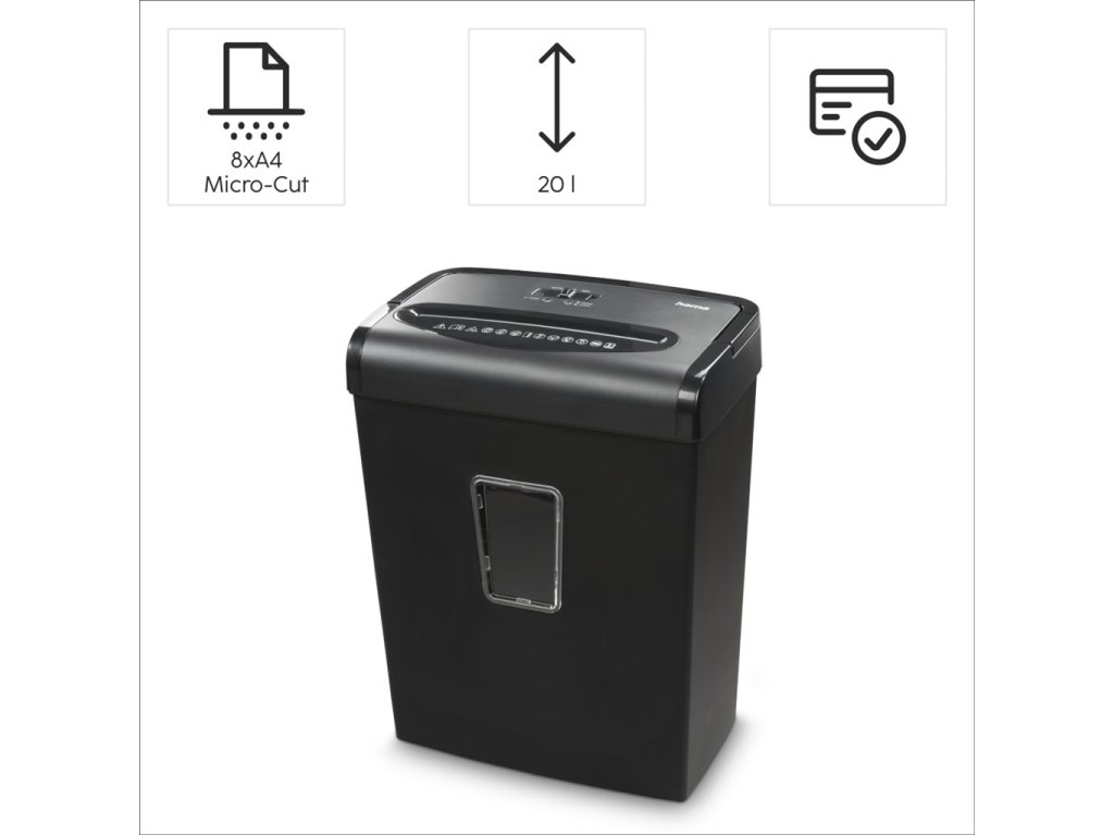 Hama Premium M8+, skartovač, mikrorez, 8 listov, klasifikácia P5, 20 l