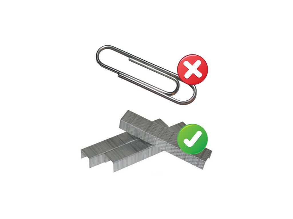 - vysoce kvalitní nože vyrobené z oceli si poradí i se sešívacími sponkami; sešívací sponky spojí listy papíru trvale, nejde o kancelářské sponky pro dočasné sepnutí listů papíru (viz obrázek v galerii obrázků)