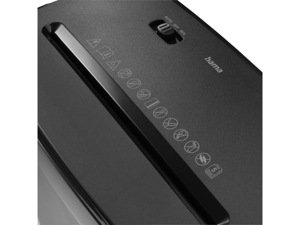 - skartovačka s krížovým rezom- skartovanie 5 listov papiera A4 (80 g/m2) naraz