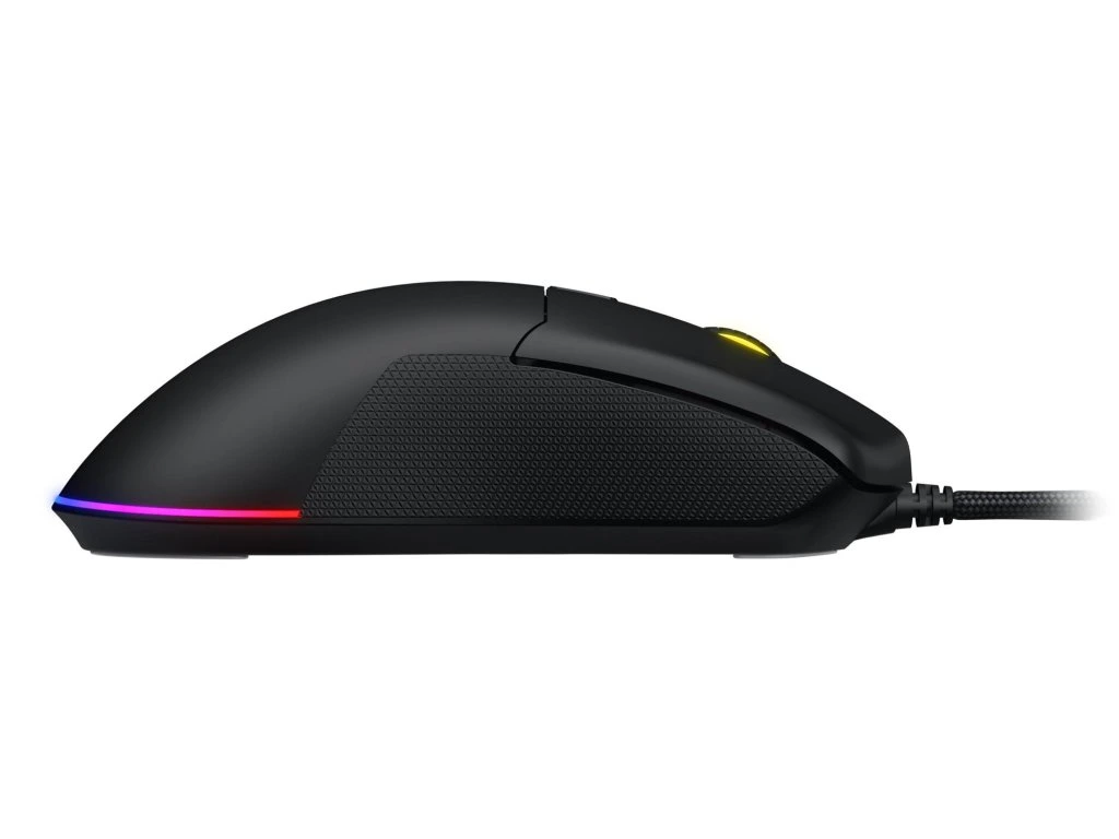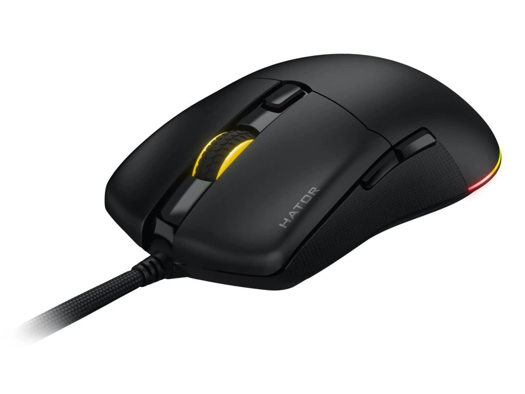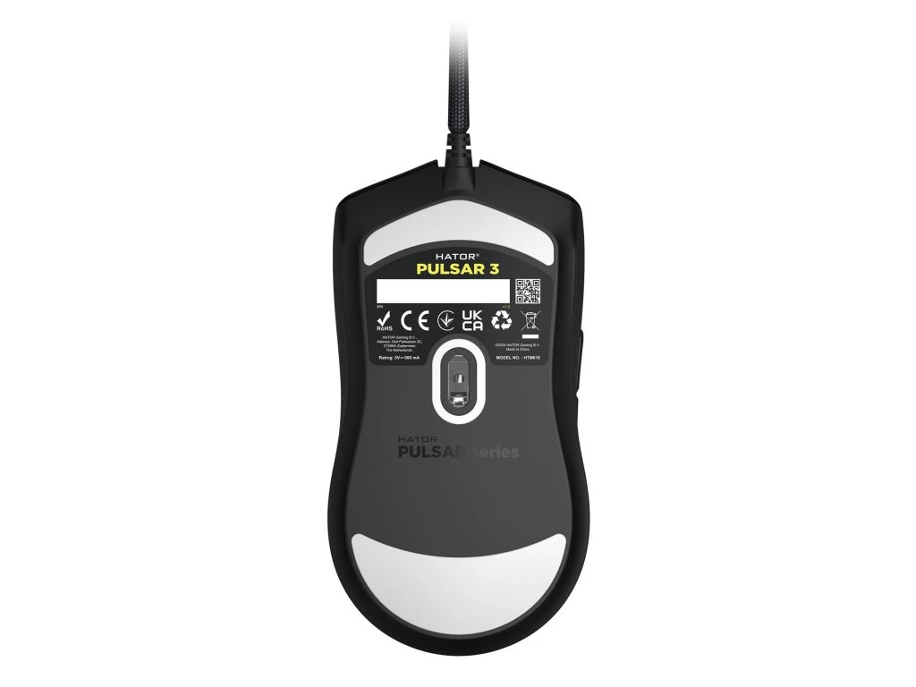 HATOR Pulsar 3 - Drôtová herná myš Kabelová herná myš HATOR Pulsar 3 (HTM610) ponúka presnosť, odolnosť a pohodlie pri každodennom používaní. Je ideálnou voľbou pre hráčov, ktorí hľadajú vysoký výkon za rozumnú cenu. Vďaka pokročilej technológii a ľahkému dizajnu posunie vašu hru na vyššiu úroveň. Kľúčové vlastnosti Ultraľahká a symetrická konštrukcia: Myš s hmotnosťou ľan 62 ga symetrickým dizajnom je vhodná pre obe ruky a ideálna na esport a dlhé herné relácie. Presný optický snímač: spoľahlivý snímač PixArt PMW3311 s rozlišením až 12 000 DPI zaručuje výnimočnú presnosť a rýchlu odozvu. Nabízí 6 režimov rozlíšenia a 4 frekvencie pollingu (až 1000 Hz). Odolné optické spínače: Optické žlté spínače HATOR so životnosťou 100 miliónov kliknutí kombinujú okamžitú odozvu s uspokojivým hmatom. Osvetlenie RGB: Dve zóny osvetlenia RGB (rolovacie kolečko a zadná časť myši) umožňujú personalizáciu dizajnu a indikujú nastavenie DPI. Ďalšie funkcie: Vizuálna podpora: 1: Opletený kábel z paracordu s dĺžkou 1,8 m je ľahký a flexibilný. Šesť programovateľných tlačidiel vrátane funkcií pre DPI a Polling rate. Kĺzne plochy zo 100% PTFE zabezpečujú rýchly a plynulý pohyb. K dispozícii je softvér pre rozsiahle možnosti prispôsobenia. Špecifikácie Herné Formát: (obojručné) Snímač: Optický PixArt PMW 3311 Rozlíšenie pohybu: 12 000 DPI Frekvencia dotazovania: 1000 Hz Zrýchlenie (max.): 35 G Životnosť tlačidla: 100 miliónov kliknutí Hmotnosť: 62 g Rozmery 38 mm Dĺžka kábla: 1,8 m Rozhranie: USB typu A Obsah balenia Myš HATOR Pulsar 3 Používateľská príručka Počet produktov v balení: 1 ksDodatočné parametre
