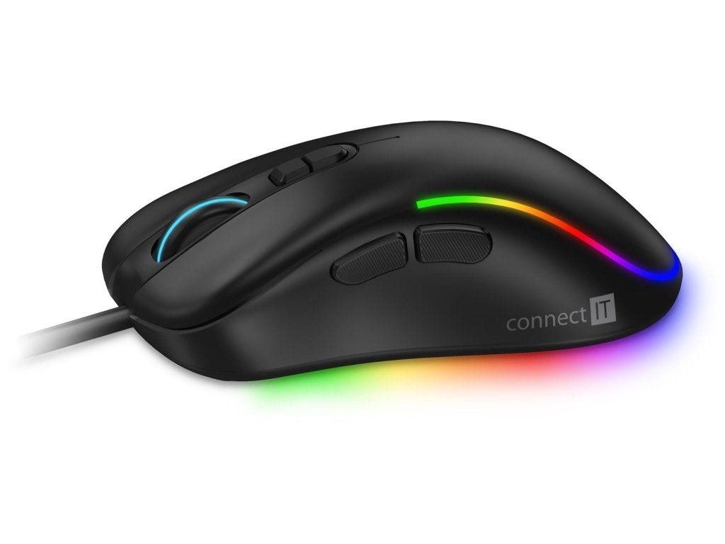 Profesionálna herná myš radu NEO 2 s podsvietením RGB (13 režimov) a rozlišením až 7200 DPI (17 voliteľných úrovní). Umožňuje bohaté nastavenie v dodávanom softvéri vďaka 7 programovateľným tlačidlám. Samozrejmosťou je prémiový opletený napájací kábel s pozláteným USB konektorom. Táto myš sa dodáva s archívom propagačných nálepiek "CONNECT IT NEO" a softvérom, ktorý je k dispozícii na bezplatné stiahnutie na adrese www.connectit-europe.com. Určené pre profesionálnych aj amatérskych hráčov počítačových hier Optický senzor INSTANT 725 Citlivosť optického snímača s možnosťou volby až 6 stupňov, pričom každý stupeň je nastaviteľný na jednu zo 17 úrovní (200/400/600/800/1000/1200/1400/1600/1800/2000/2400/3200/4000/4800/5600/6400//7200 DPI) Ergonomický dizajn umožňujúci všetky 3 ÚP teflónové dráhy pre maximálny sklz myši na akomkoľvek povrchu Mechanické spínače HUANO s garantovanou životnosťou 5 miliónov kliknutí LED podsvietenie so 16,8 milióna farieb RGB Podsvietenie v 13 farebných režimoch s možnosťou úplného vypnutia RGB cyklus, Blikánie, Statické RGB, Pulz, Premávka, Spúšť, LED OFF) Podsvietenie kolies 7 programovateľných tlačidiel vrátane presného rolovacieho kolečka rýchlosti rolovacieho kolečka (11 úrovní) Zrýchlenie až do 20G Frekvencia dotazovania: 127 Hz Štandardné (továrne) nastavenie tlačidiel: - Ľavé tlačidlo = kliknutie levým tlačidlom - Pravé tlačidlo = pravé kliknutie - rolovacie koleso = posúvanie - Horné tlačidlo = zmena DPI - Horné tlačidlo bočné zadné tlačidlo = dozadu Pogumované kolečko s protišmykovou úpravou pre maximálny úchop Vysoká presnosť ideálna aj na prácu v grafických editoroch Napájací kábel s prémiovým opletením Pozlátený konektor USB pre maximálnu konektivitu Ergonomicky profilovaný extrémne veľký konektor USB na jednoduché pripojenie/odpojenie zo zadnej strany počítačovej skrine (jednoduchý ochranu kábla pred nežiaducim RF rušením po celej jeho dĺžke Duálna kompatibilita so systémami Windows a macOS (funkcie produktu nepodporované systémom macOS nemusí fungovať správne) Dĺžka kábla: 150 cm Rozmery (d × š × v): 121 x 65 x 39 mm Hmotnosť bez kábla: 1 Myš Príručka užívateľa Arch propagačných nálepiek "CONNECT IT NEO" Bezplatné stiahnutie softvéru na www.connectit-europe-comDodatočné parametre