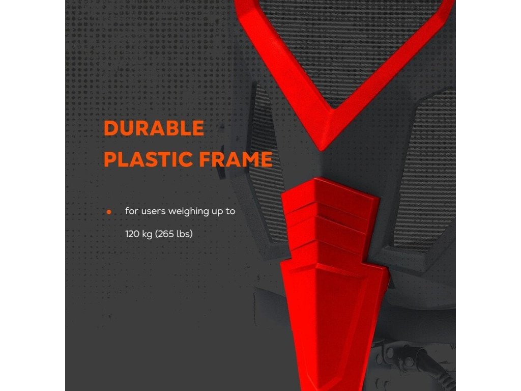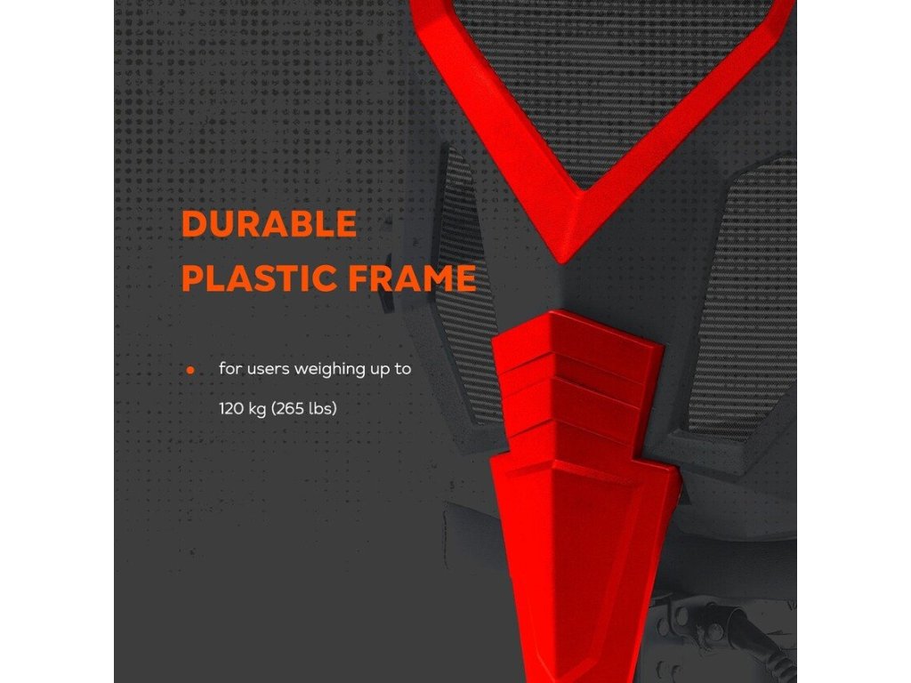 Ľahký, ale odolný plastový rám zaisťuje stabilitu a jednoduchú manipuláciu. Sieťované operadlo umožňuje optimálnu cirkuláciu vzduchu, takže zostanete v chlade aj počas vzrušujúcich herných chvíľ. Poťah sedadla z ekokože dodáva kreslu elegantný vzhľad a ľahko sa udržiava. Opierky na ruky z PU sú ergonomicky tvarované pre pohodlnú oporu rúk.