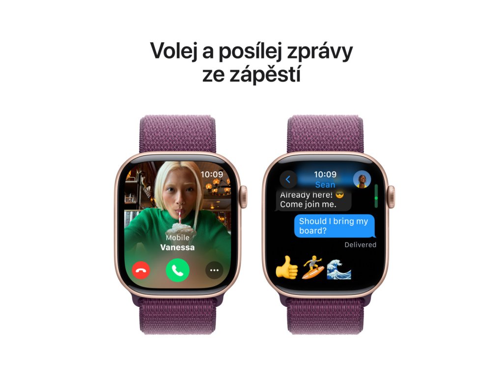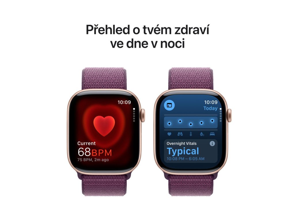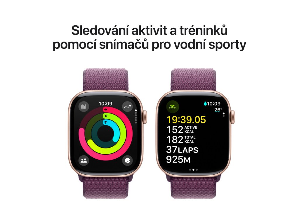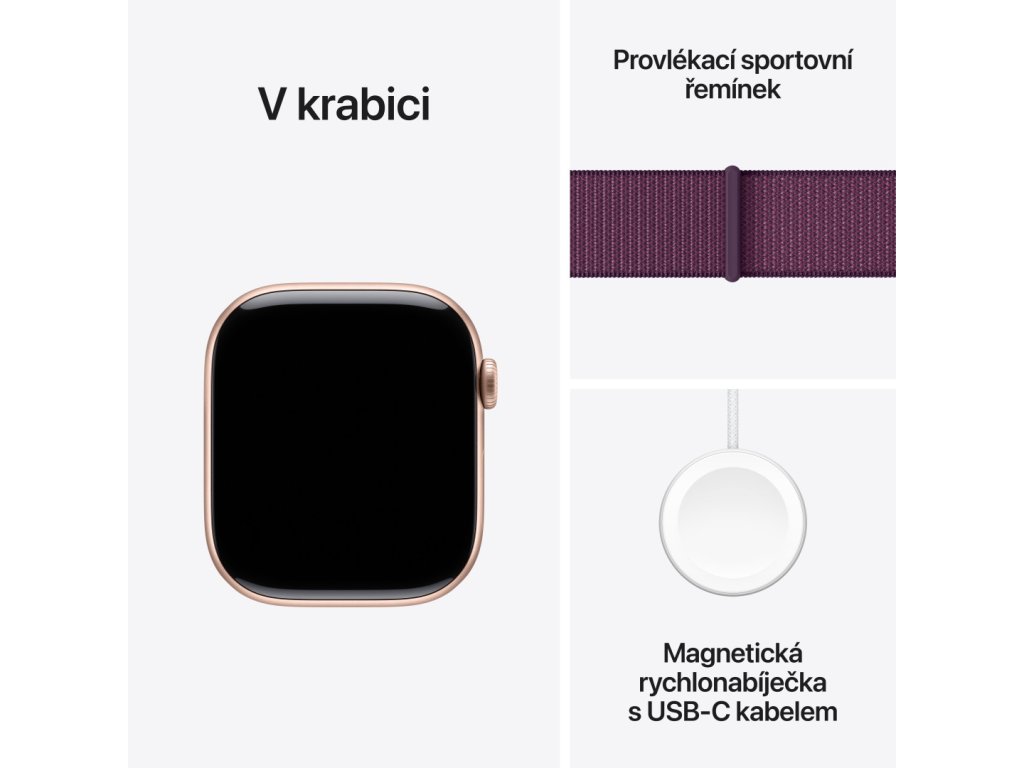 Hliníkové puzdro Apple Watch Series 10 GPS 42 mm ružovo-zlaté so švestkovou športovou slučkou (MWWK3QC/A)