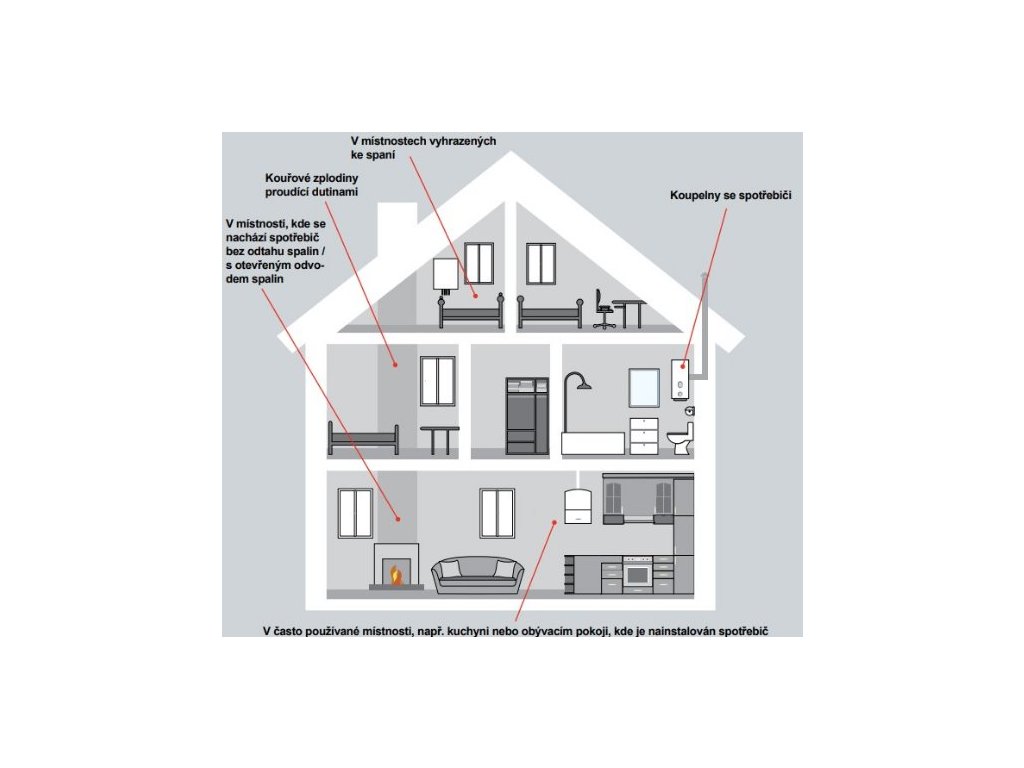 Honeywell R200C-2 - bateriový detektor oxidu uhoľnatého. Séria detektorov CO R200 bola optimalizovaná na použitie v domácnostiach na ochranu pred CO. Sú navrhnuté tak, aby splňovali potreby majiteľov domov a individuálnych užívateľov. Vysoká spoľahlivosť Osvedčená patentovaná technológia snímača s dlhou životnosťou Nezávisle certifikované skúšobnou laboratóriou podľa európskych noriem na prevádzku 10-ročná životnosť a záruka Bezúdržbová konštrukcia, žiadne vymeniteľné diely Ochrana proti neoprávnenej manipulácii Nevymeniteľná interná batéria Samosvorné pripojenie k montážnej doske - demontáž je možná len pomocou nástroja (šróbovača) Aktivácia a deaktivácia sa vykonáva nasunutím na montážnu dosku alebo odstránením z montážnej strop Zapína sa ľan po nasunutí na montážnu desku Kde inštalovať detektory CO Pri zvažovaní spôsobu inštalácie je dôležité si uvedomiť, že oxid uhoľnatý má rovnakú hustotu ako vzduch, a preto sa rovnomerne rozptyľuje v celej miestnosti. Keďže však CO vzniká ako produkt spalovacieho procesu, je pravdepodobné, že bude teplejší ako okolitý vzduch, a preto bude stúpať smerom k stropu. Podrobné informácie nájdete v norme EN50292, ktorá poskytuje návod na výber, inštaláciu, používanie a údržbu detektorov oxidu uhoľnatého pre obytné budovy. V ideálnom prípade by mal byť detektor nainštalovaný v každej miestnosti, v ktorej sa nachádza spotrebič spalujúci palivo. Dôrazne odporúčame, aby boli detektory nainštalované aj v ložniciach a miestnostiach, kde trávite veľa času. V jednoizbových miestnostiach určených na spanie a bývanie zároveň, ako sú garzónky, karavany alebo lode, by mal byť detektor umiestnený čo najďalej od spotrebičov na varenie a čo najbližšie k určenej oblasti na spanie. Určené pre obytné prostredie Malý, kompaktný dizajn Jednoduchá integrácia do obytného prostredia Jednoduchá obsluha koncovým užívateľom Funkcia stlmenia alarmu a indikacia poruchy Test - umožňuje stlačenie dlhou rukoväťou (napr. od metly) Zvýraznené zobrazenie alarmovej správy Mimoriadne hlasný zvukový výstup Test so zníženou hlasitosťou zvukuDodatočné parametre