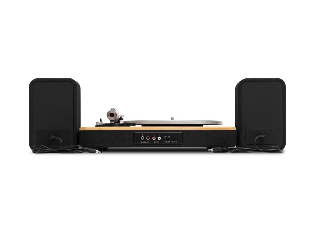 Součástí balení jsou gramofon i stereo reproduktory, připravené k okamžitému použití bez nutnosti dokupování další techniky.