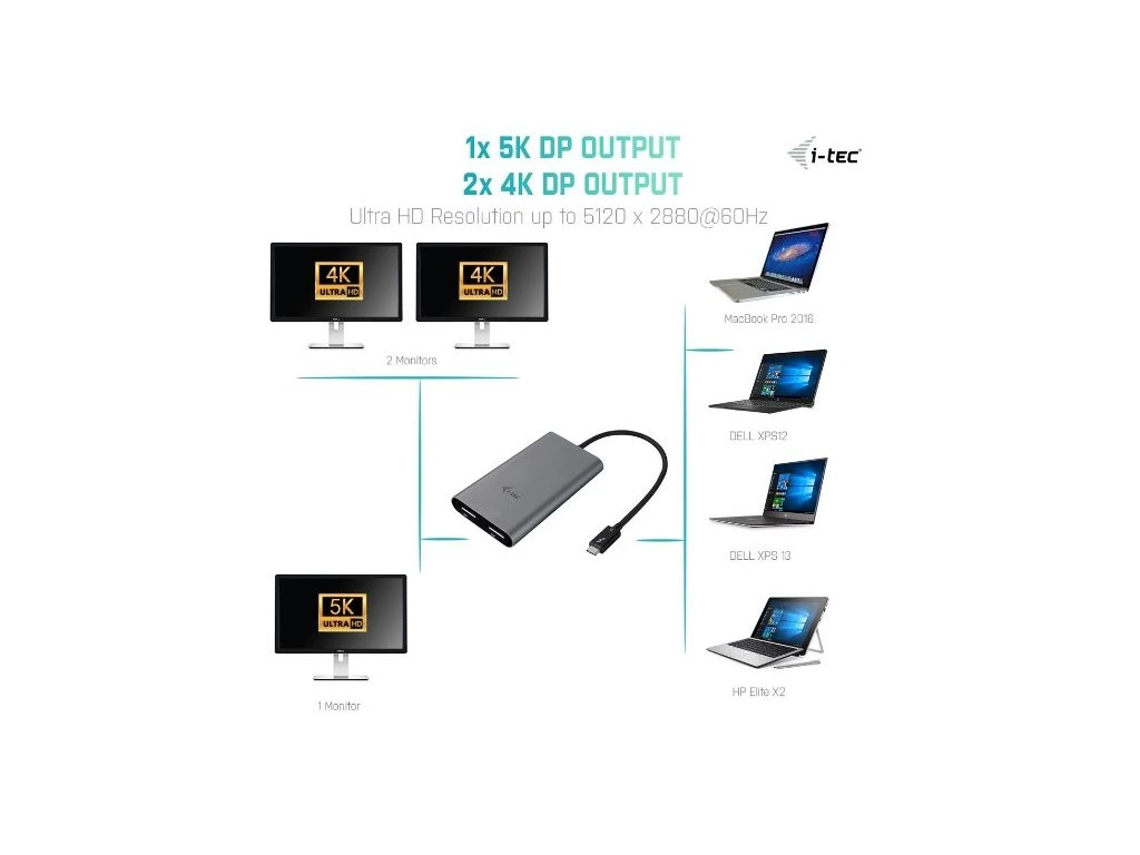 Popis produktu Adaptér podporuje prenos 1x 5K rozlíšenie až 5120x2880@60Hz alebo 2x 4K rozlíšenie 4096x2160@60Hz vrátane audio signálu. Adaptér je určený predovšetkým pre zariadenia, ktoré sú vybavené Thunderbolt ™ 3 rozhraním (MacBook Pro 2016, DELL XPS12, DELL XPS 13, DELL XPS 15, HP Elite X2, EliteBook Foli G1, Spectre x360, Lenovo Thinkpad P50, Lenovo Thinkpad P70). Tento konektor má množstvo výhod. Je menší a symetrický, čo umožňuje ľahké zapojenie, pretože nemusíte dávať pozor na otočenie konektora. Viac o Thunderbolt™ 3 / USB-C konektore sa dozviete tu. Adaptér je vhodný pre projektantov, grafikov a ostatných užívateľov, ktorí pracujú s viacerými obrazovkami súčasne. Jeho výkon vám umožňuje prevádzkovať aj tie najnáročnejšie aplikácie na jednom alebo dvoch nezávislých displejoch, čo je ideálne na editáciu 5K/4K 60Hz videa alebo pre ďalšie úlohy typu Ultra HD, ako je vytváranie CAD výkresov alebo prezeranie lekárskych snímok. Pomocou režimov „Rozšíriť“ a „Zrkadliť“ môžete pracovať s aplikáciami cez dva monitory (napr. široké tabuľky), na jednom monitore pracovať a na druhom vyhľadávať informácie na internete, porovnávať viac dokumentov súčasne bez neustáleho „preklikávania“ medzi otvorenými oknami, zobraziť panoramatické obrázky cez dva monitory, sledovať grafy a aktuálne dáta v rovnaký okamih. veľmi jednoduché, adaptér iba pripojíte do Thunderbolt™ 3 portu počítača, pomocou Display Port kábla ho prepojíte so zobrazovacím zariadením a môžete začať okamžite využívať. Pri pripojení jediného monitora cez dva Display Port káble dosiahnete rozlíšenie až 5K 5120x2880@60Hz, grafická karta vo vašom počítači však musí podporovať 5K rozlíšenie. Adaptér je kompatibilný s aktívnymi HDMI, DVI a VGA adaptérmi, takže je možné pripojiť aj monitory a televízie, ktoré nemajú Display Port konektor. Inštalácia ovládačov je automatická zo systému. ŠPECIFIKÁCIA - Rozšírte svoju pracovnú plochu až o dva externé Display Port monitory cez nový Thunderbolt™ 3 konektor. Adaptér podporuje prenos 1x 5K rozlíšenia až 5120x2880@60Hz alebo 2x 4K rozlíšenie 4096x2160@60Hz vrátane audio signálu. - 1x Thunderbolt™ 3 konektor pre pripojenie adaptéra k notebooku, tabletu alebo PC / 32 bitov - Napájanie zo zbernice Thunderbolt™ 3, nie je potrebný externý napájací adaptér - OS: Microsoft Windows® 8, 8.1, 10, macOS® Sierra 10.12 a vyššie. Vyžaduje Thunderbolt™ 3 rozhrania, napríklad MacBook Pro 2016 a novšie, DELL XPS12, DELL XPS 13, DELL XPS 15, HP Elite X2, EliteBook Foli G1, Spectre x360, Lenovo Thinkpad P50, Lenovo Thinkpad P70, a veľa ďalších. - Rozmery produktu: 100 x 60 x 15 mm - Hmotnosť produktu: 95 g - Rozmery balenia: 180 x 130 x 25 mm - Hmotnosť balenia: 155 gDodatočné parametre