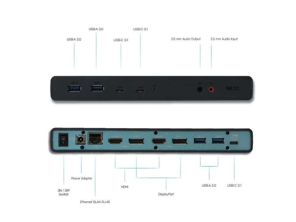 Popis produktu Excelentný výkon, univerzálne možnosti pripojenia a ochrana vašej investície vďaka podpore súčasných aj budúcich technológií. S touto univerzálnou dokovacou stanicou i-tec dosiahnete úžasné grafické rozlíšenie až 5K / 60Hz, ktoré teraz neponúka žiadna iná dokovacia stanica v tejto cenovej kategórii. V prípade, že je dokovacia stanica pripojená k notebooku alebo tabletu, ktorý na svojom porte USB-C alebo Thunderbolt 3 podporuje nabíjanie, je schopná poskytnúť napájanie (Power Delivery) až 65W.* Prispôsobte si svoje pracovisko a pripojte k svojmu notebooku alebo tabletu s USB-A 3.0 alebo USB-C rozhraním svoje obľúbené príslušenstvo. Vďaka tejto dokovacej stanici sa vyhnete neustálemu pripájaniu a odpájaniu všetkých zariadení zakaždým, keď si beriete váš notebook alebo tablet so sebou. Výhodou je tiež väčší poriadok na pracovnom stole, odkiaľ zmizne neprehľadná spleť káblov. Dokovaciu stanicu stačí pripojiť jediným káblom a okamžite ju môžete začať využívať. Prepojovací kábel s oboma koncovkami (USB-C na C, USB-C na A) je súčasťou balenia. Inštalácia ovládačov je automatická zo systému Win 10, pre ostatné operačné systémy si prosím stiahnite ovládače tu. Vychutnajte si úžasný zážitok na veľkej obrazovke pri sledovaní filmov v 4K/60Hz, profesionálnej grafickej práci, streamovaní médií, prezeraní prezentácií alebo webových stránok. Dokovacia stanica je vybavená štyrmi grafickými výstupmi, vďaka ktorým môžete využívať rôzne kombinácie dvoch displejov. Pripojiť môžete buď 2x HDMI alebo 2x Display Port alebo 1x HDMI a 1x Display Port, vždy s rozlíšením až 4K 4096×2160@60Hz. Pri pripojení jediného monitora cez 2 DP káble dosiahnete rozlíšenie až 5K 5120×2880@60Hz Dokovacia stanica ďalej ponúka audio vstup/výstup, gigabitovú sieťovú kartu, šesť USB 3.0 portov, Kensington Lock a vypínač ON/OFF. Okrem toho sa vyznačuje kompaktným a elegantným dizajnom a vysoko efektívnym pasívnym systémom chladenia. Poznámka: niektoré modelové rady notebookov HP (HP EliteBook alebo HP ZBook) majú nabíjanie prostredníctvom USB-C (Power Delivery) riešené za použitia proprietárneho, resp. vyššieho merného odporu v riadení obvodu USB-C (resp. Thunderbolt 3) portu, než je bežný priemyselný štandard. Naša dokovacia stanica je však schopná plnohodnotne nabíjať aj tieto notebooky; v niektorých prípadoch však bude nutné po opätovnom pripojení k notebooku reštartovať dokovaciu stanicu tlačidlom On/Off. Špecifikácia • 1x USB-C port pre pripojenie k notebooku s USB-C alebo USB-A rozhraním, prepojovací kábel s oboma koncovkami je súčasťou balenia • Grafické rozhranie: 2x HDMI a 2x Display Port. Dokovacia stanica podporuje pripojenie max. dvoch monitorov. Rozlíšenie: – 1 monitor pripojený cez 2 DP káble: 1x DP + 1x DP podporuje až 5K 5120×2880@60Hz, grafická karta vo vašom počítači musí podporovať 5K rozlíšenie – 2 monitory pripojené zároveň: 1x DP + 1x DP podporuje až 4K 4096×21; 1x DP + 1x HDMI podporuje až 4K 4096×2160 @ 60Hz; 1x HDMI + 1x HDMI podporuje až 4K 4096 x 2160 @ 60Hz • 4x USB-A 3.0 port pre pripojenie vašich existujúcich USB 3.1/3.0/2.0 zariadení a vysokorýchlostný prenos dát (5 Gbps), podpora funkcie USB Hot Swapping, z toho 1x USB-A 3y s 1x USB-A 30. 1.2) • 2x USB-C 3.1 port pre pripojenie vašich zariadení s podporou USB-C, podporujúci vysokorýchlostný prenos dát (5 Gbps), podpora funkcie USB Hot Swapping • 1x Ethernet GLAN RJ-45 port pre vysokorýchlostný prístup k sieti a internetu cez Gigabit Ethernet: podporuje rýchlosti 10/10 DL6950 • Power Delivery až 65 W (vyžaduje USB-C port s podporou napájania). U HP notebookov s portom USB-C podporujúcim Power Delivery (HP EliteBook alebo HP ZBook) môže byť potrebná, na dosiahnutie plnej funkčnosti vrátane dobíjania notebooku, dokovaciu stanicu po pripojení reštartovať tlačidlom On/Off. • Oddelený mikrofónový vstup a slúchadlový výstup, 1x 3.5 mm Audio out 5.1, 1x 3.5 mm Mic in • Prepínač ON/OFF pre zapnutie a vypnutie dokovacej stanice • LED indikácia • Kensington lock • 1x vstup pre napájanie – externý napájací adaptér (výstup: DC 20V/8. Mac OS X, Linux Ubuntu 14.04 / 16.04, Android 6 a vyššie. Windows 10 – automatická inštalácia ovládačov z OS. Ostatné operačné systémy – manuálna inštalácia ovládačov. Firmvér sa aktualizuje automaticky. • Rozmery produktu: 223 x 88 x 27 mm • Hmotnosť produktu: 338 g • Rozmery balenia: 314 x 144 x 60 mm • Hmotnosť balenia: 1380 g SYSTÉMOVÉ POŽIADAVKY • Hardvérové požiadavky: Notebook alebo tablet s voľným USB-A alebo USB-C portom. X, Linux Ubuntu 14.04/16.04, Android 6 a vyššie. Windows 10 – automatická inštalácia ovládačov z OS. Ostatné operačné systémy – manuálna inštalácia ovládačov. Firmvér sa aktualizuje automaticky. Odporúčané použitie dokovacej stanice na nasledujúcich platformách: Intel® Core i3: kancelárske použitie (aplikácie typu Word, PowerPoint, Excel), a pracovná plocha alebo video na 1 monitore s rozlíšením do 2k. Zároveň je pri práci možné používať aj jeden z USB portov na prenos a zálohu dát napr. na externý HDD disk. (Pripojenie dvoch monitorov do rozlíšenia FullHD aj 4k rozlíšenia a video je na jednom monitore možné, ale môže spôsobiť dlhšie odozvy systému a výrazne znížený počet snímok za sekundu). Intel® Core i5: rozšírené kancelárske použitie a zábavu (aplikácie typu Word, PowerPoint, Excel a 2D aplikácií typu Photoshop), pracovná plocha a aplikácie na 2 monitoroch s rozlíšením do 4K. Odporúčané prehrávanie videa: 1x 2K a 1x 4K. Na prenos a zálohu dát je možné použiť dva USB porty. (Prehrávanie videa 2x 4K môže spôsobiť výrazné zníženie počtu snímok za sekundu a/aleb