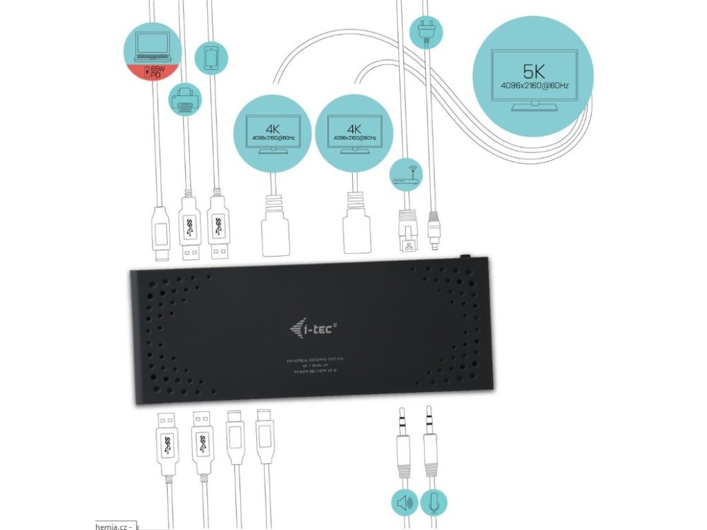 I-TEC USB 3.0 / USB-C 5K Univerzálny dual dokovacia stanica s PD CADUA4KDOCKPDL