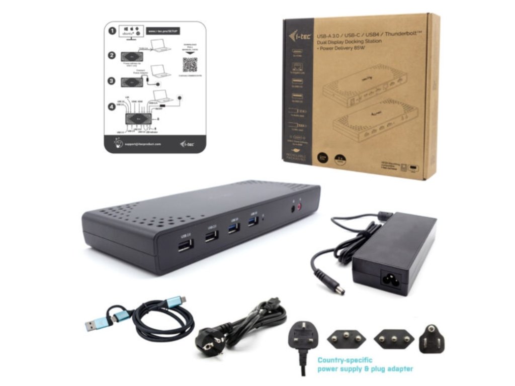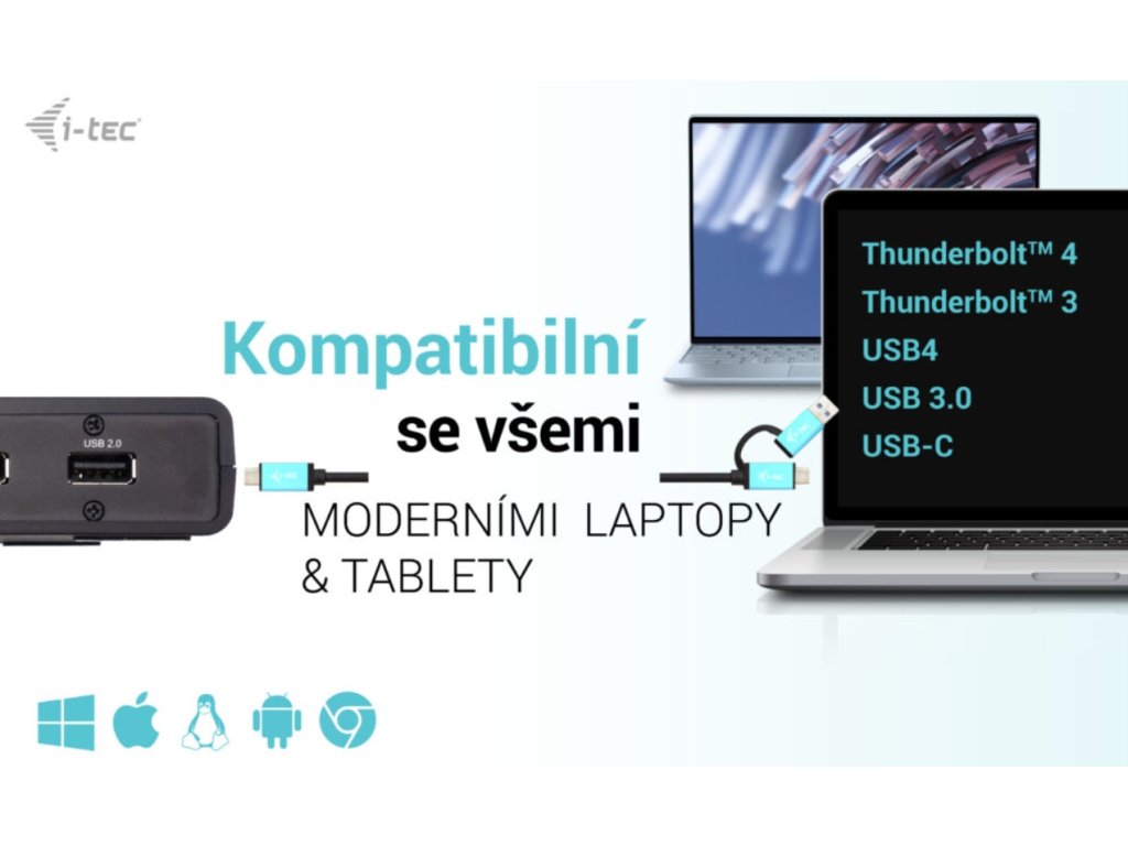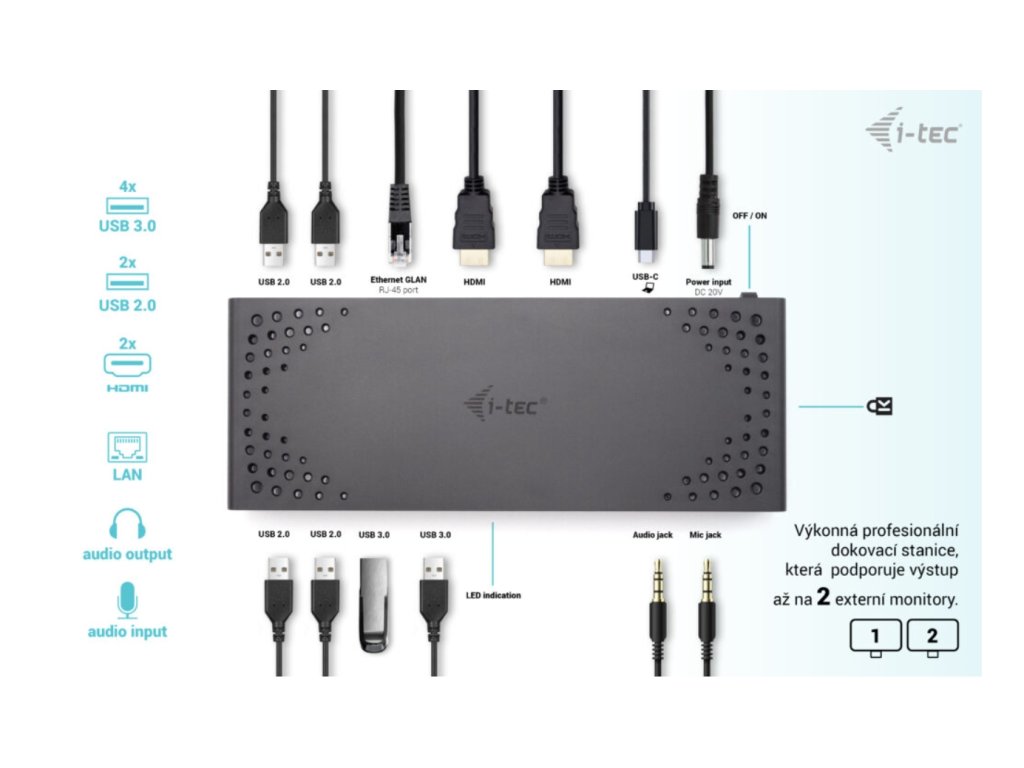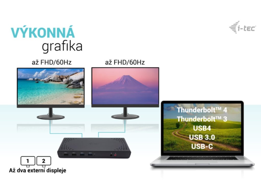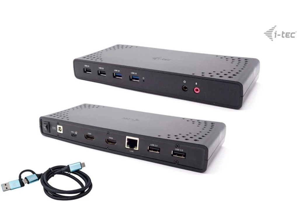 Vylepšite svoj notebook, tablet alebo smartfón pomocou pripojenia USB-C alebo USB-A. Táto dokovacia stanica pre dva monitory kompatibilná s rozhraním Thunderbolt je vybavená čipovou sadou DisplayLink DL3900 a ponúka flexibilitu hostiteľských rozhraní USB-C aj USB-A. Súčasťou balenia je pripojovací kábel s oboma konektormi (USB-C pre C, USB-C pre A). Po pripojení k notebooku alebo tabletu, ktorý podporuje nabíjanie cez port USB-C alebo Thunderbolt 3, je dokovacia stanica schopná poskytnúť až 85 W energie (Power Delivery). Porty 2x USB-A 3.0 a 4x USB 2.0 uľahčujú pripojenie akéhokoľvek existujúceho hardvéru a port Gigabit Ethernet RJ45 poskytuje spolehlivé, robustné a vysokorýchlostné internetové pripojenie s podporou rýchlostí 10/100/1000 Mb/s. Na prednom paneli nájdete 3,5 mm audio konektory a na zadnom paneli ľahko prístupný vypínač na šetrenie energie. Pridaný slot na zámok Kensington poskytuje dodatočné zabezpečenie, najmä pre tých, ktorí pravidelne pracujú na verejných miestach. Dokovacie stanice i-tec sú kompatibilné s drvivou väčšinou značiek a platforiem notebookov, takže pripojenie vášho obľúbeného hardvéru je jednoduchšie ako kedykoľvek predtým. Zariadenie je extrémne kompaktné, ideálne na použitie doma alebo v kancelárii. Najmä na použitie v režime hot-desking, a to vďaka možnosti hybridného rozhrania USB-C alebo USB-A. Pripojte svoj notebook, tablet alebo smartfón k iným monitorom a svojmu obľúbenému hardvéru prostredníctvom jediného portu USB-C alebo USB-A (kábel je súčasťou balenia). - Univerzálna dokovacia stanica kompatibilná s notebookmi a tabletmi s rozhraniami USB-C, USB-A a Thunderbolt. - 2x HDMI s podporou až dvoch displejov s rozlišením FHD/60 Hz (platí aj pre platformu Apple M1) alebo jedného displeja s rozlišením 1440/50 Hz. - 6x port USB vrátane 2x USB-A 3.2 Gen 1 (5 Gb/s) a 4xUSB 2.0, vďaka čomu môžete ľahko pripojiť viacero USB zariadení a periférií. - Poskytuje až 85W Power Delivery pre kompatibilné notebooky a tablety s USB-C a Thunderboltom (hostiteľské zariadenie musí podporovať USB-C Power Delivery). - GLAN Ethernet podporuje sieťové rýchlosti 10/100/1000 Mb/s, čím poskytuje robustné vysokorýchlostné pripojenie k internetu. - Samostatné 3,5 mm audio vstupné a výstupné konektory na jednoduché pripojenie náhlavnej súpravy alebo reproduktorov. - Dostupný držiak VESA, ktorý vám pomôže udržať pořádok na stole a zbaviť sa káblov, a slot K-lock na zvýšenie bezpečnosti. Špecifikácia - 1x port USB-C na pripojenie k zariadeniam USB-C alebo USB-A (pripojovací kábel USB-C a adaptér USB-C na USB 3.0 sú súčasťou dodávky) - DisplayLink + USB-C PD - Dodávka energie: 85 W Video porty: - 2x HDMI - 1 monitor - 1x HDMI ' do 1440p 1080p/60Hz - 2x port USB 3.2 Gen1 - 4x port USB 2.0 - 1x port Ethernet GLAN RJ-45 (DisplayLink DL-3900) - 1x 3,5 mm audio výstup, 1x 3,5 mm vstup pre mikrofón - 1x vstup napájania (DC (pomocou softvéru i-tec Docker Pro) - WOL: S1, S2, S3 - Podpora zámku Kensington - Podpora montáže VESA - Kabel USB-C (100 cm) - OS: Windows 10/11, macOS, Android 5 alebo novší, Chrome OS R51 alebo novší, Linux Ubuntu -Jako, (externý odkaz)) - Rozmery výrobku: 224 x 88 x 27 mm - Hmotnosť výrobku: 314 g - Rozmery balenia: 250 x 250 x 50 mm - Hmotnosť balenia: 1174 g Požiadavky na hardvér: - Zariadenie s volným portom USB-A, USB-3, USB-C. Požiadavky na napájanie Power Delivery: - Zariadenie s volným portom USB-C, USB4 alebo Thunderbolt™ 3/4 s podporou Power Delivery Operačný systém: - Windows 10/11, macOS, Android 5 alebo novší, Chrome OS R51 alebo novší, Linux Ubuntu Ak je dokovacia stanica pripojená! Obsah balenia - Produkt - Kabel USB-C s adaptérom USB-C na USB-A (100 cm) - Napájací adaptér (kábel DC 110 cm, napájací kábel 170 cm) - PríručkaDodatočné parametre