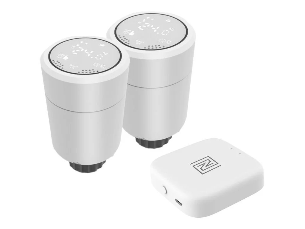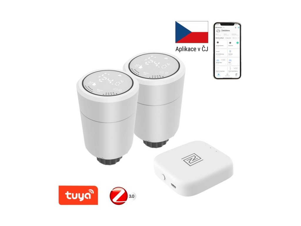 Súprava obsahuje 2x termostatickú hlavicu a 1x inteligentnú hlavicu BRIDGE PRO v2.