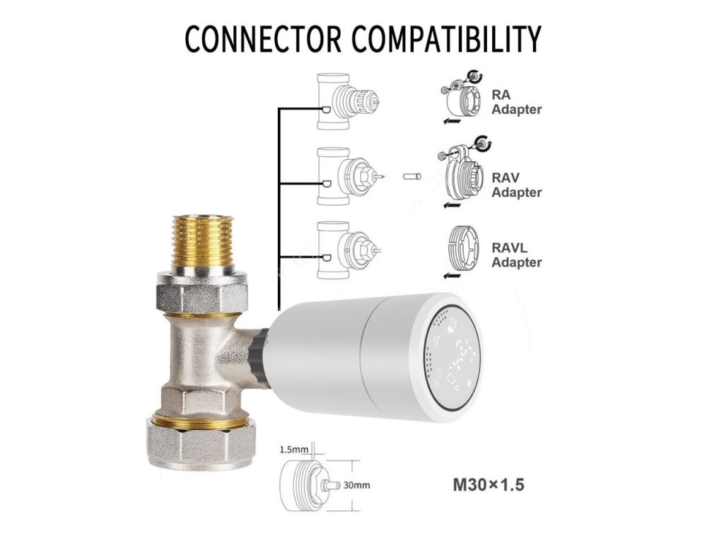 Vzdialená komunikácia a ovládanie pomocou mobilnej aplikácie IMMAX NEO PRO (vyžaduje NEO BRIDGE PRO Smart Zigbee 3.0 v2) Komfortné riadenie kúrenia s úsporou energie pomocou programovateľných funkcií a vzdialeného ovládania odkiaľkoľvek na svete. Možnosť lokálneho ovládania tlačidlami na tele hlavice. Týždenný program s možnosťou voľby medzi 5+2, 6+1 a 7 dní x 6 režimov teploty a času. Špeciálna funkcia - prázdninový režim / funkcia otvoreného okna / komfortný režim / režim. Naprogramované časové funkcie sú uložené v termost. hlavicu a fungujú aj pri výpadku internetu. Funkcia zámok obmedzuje ovládanie priamo z termost. hlavice (vhodné ako detský zámok alebo do prenajímaných nehnuteľností). Funkcia rýchleho ohrevu BOOST. Podsvietený LCD displej. Jednoduchá inštalácia, veľkosť závitu M30 x 1,5. Na displeji je možné zobraziť nastavenú / nameranú teplota alebo čas. Upozornenie Všetky Zigbee zariadenia potrebujú na ovládanie NEO BRIDGE PRE Smart Zigbee 3.0 v2. Termostatická hlavica neovláda kotol. Heslo na nastavenie pokročilých funkcií: 123456 Technická špecifikácia: Protokol: ZigBee 3.0 Frekvencia: 2400MHz~2483.5MHz Maximálny RF výstupný výkon: ZigBee: 10dBm - max 19dBm Kompatibilný s ventilmi: RA, RAV, RAVL Prevádzka: batérie. Rozsah nastavenia teploty: 5 ° C - 35 ° C, v 0,5 ° C krokoch Presnosť: ± 1 ° C Ovládanie: PID Rozmery termostatu: 53 x 89,5 mm Max. predĺženie: 4,5 mm Veľkosť závitu: M30 * 1,5 Farba: biela Stupeň ochrany: IP20 Certifikácia: CE, RoHs Obsah balenia: termostatická hlavica, redukcia, užívateľský manuálDodatočné parametre