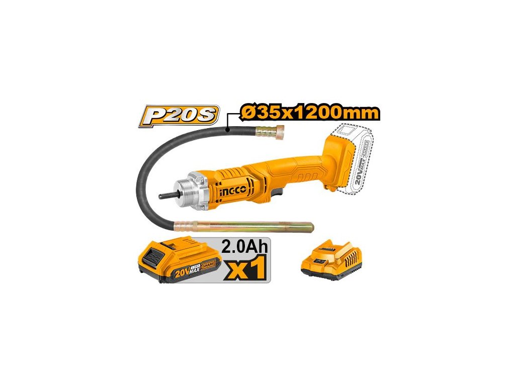 Ingco CCVLI2023011 akumulátorový ponorný vibrátor na zhutňovanie betónu vrátane batérie a nabíjačky