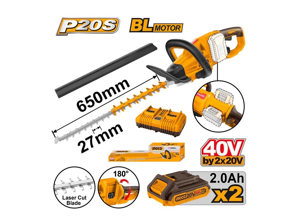 Ingco CHTLI400282 akumulátorové nožnice na živý plot vrátane 2 ks akumulátora a nabíjačky