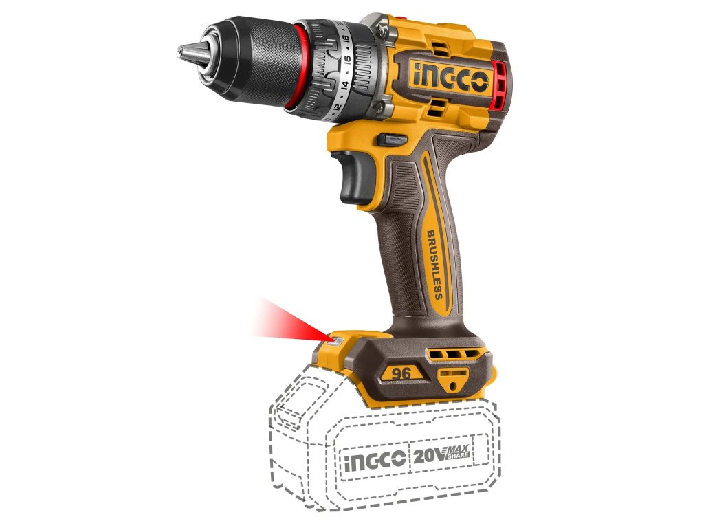 INGCO CIDLI209681 - Aku vrtačka a šroubovák INGCO CIDLI209681 je výkonná akumulátorová vrtačka s bezuhlíkovým motorem, která nabízí vysoký točivý moment a mechanickou dvourychlostní převodovku. Díky bohatému příslušenství je vhodná pro široké spektrum vrtacích a šroubovacích prací. Specifikace Motor: Bezuhlíkový (brushless) Napětí: 20 V Otáčky naprázdno: 0–500 / 0–2000 ot./min Max. počet příklepů: 30 000 úderů za minutu Max. točivý moment: 96 Nm Sklíčidlo: 13 mm, s aretací vřetena Nastavení krouticího momentu: 22 + 1 + 1 Převodovka: Mechanická 2rychlostní Speciální funkce: Integrované LED pracovní světlo, bezuhlíkový motor, akumulátorové provedení Hmotnost: 1,96 kg Rozměry: 25 x 18 x 7,8 cm Obsah balení * 1x Aku příklepová vrtačka * 3x Ploché vrtáky do dřeva (16, 19, 22 mm) * 3x Vrtáky do zdiva (5, 6, 8 mm) * 3x Vrtáky HSS (do kovu) (4, 5, 6 mm) * 2x 65 mm nárazové bity (šroubovací bity) (PH2, PH2+SL6) Poznámka: Baterie nejsou součástí balení.Dodatočné parametre
