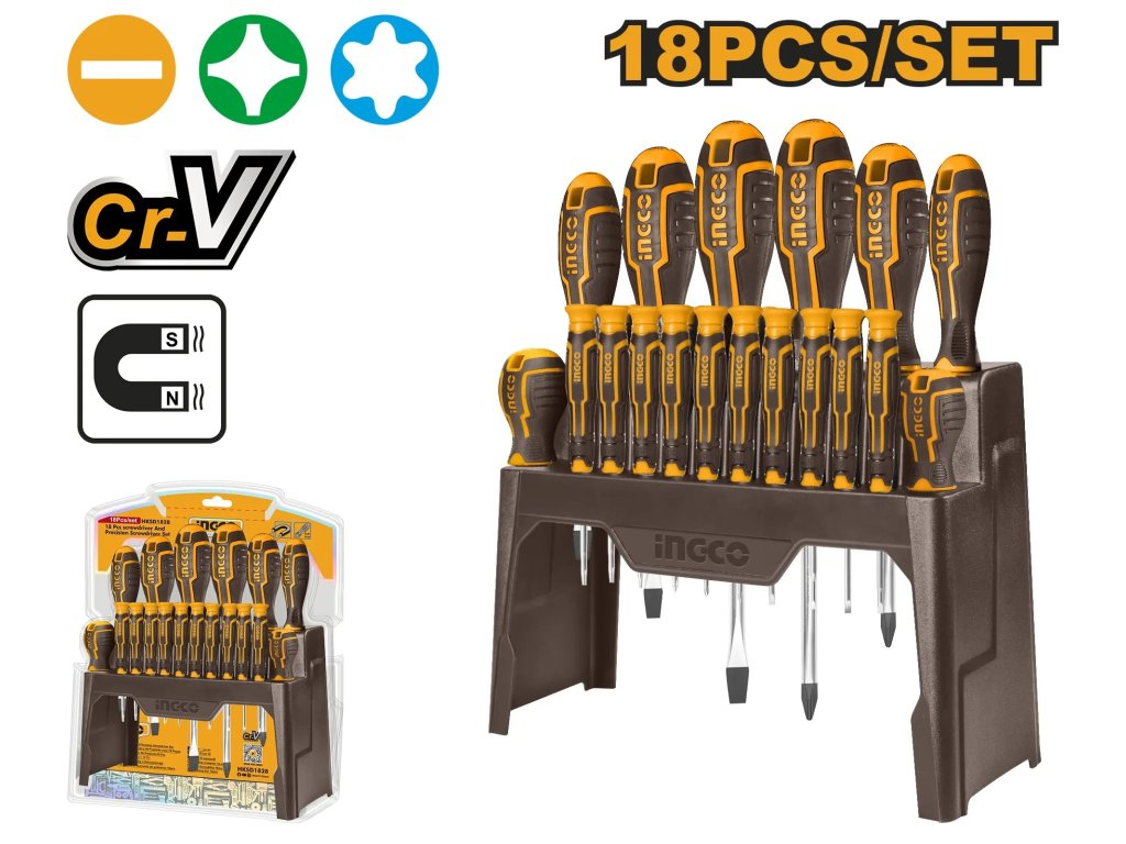 Ingco HKSD1828 Sada plochých skrutkovačov + krížových skrutkovačov 18ks CrV