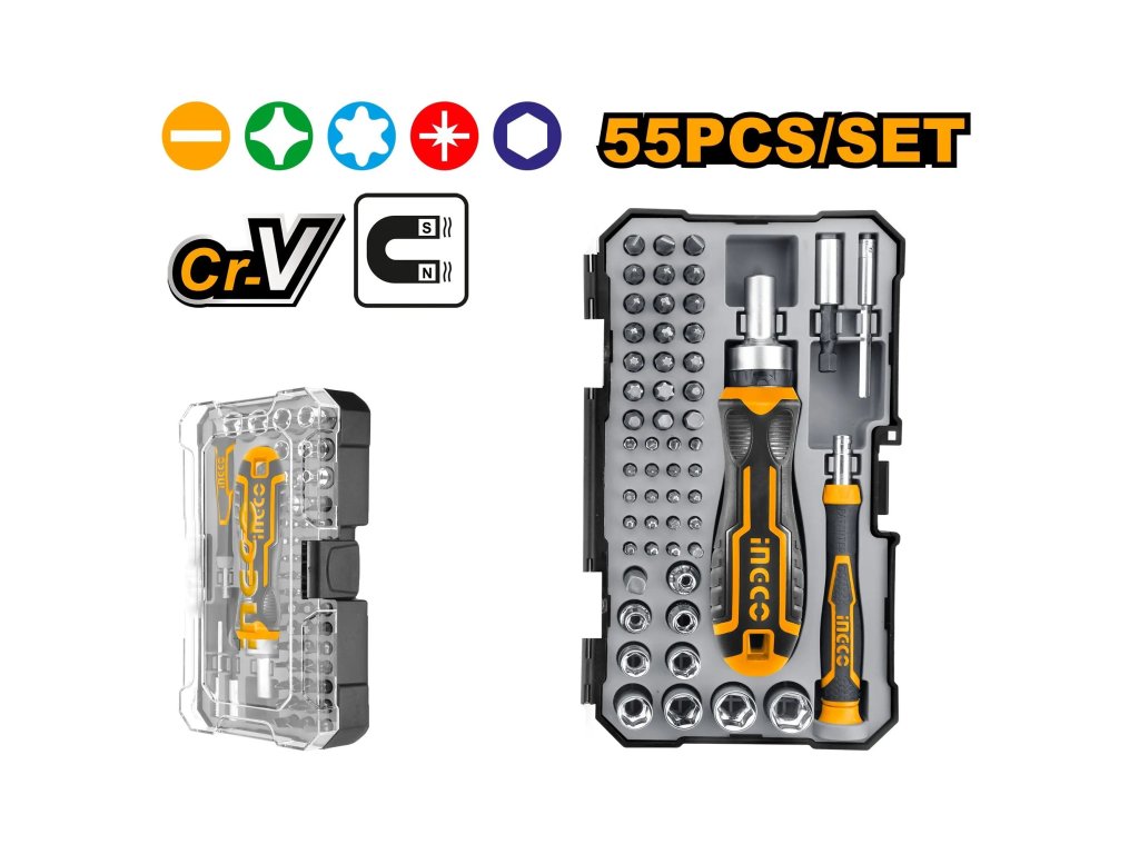 Ingco HKSDB0558 Skrutkovač s račňou + sada bitov 55ks CrV