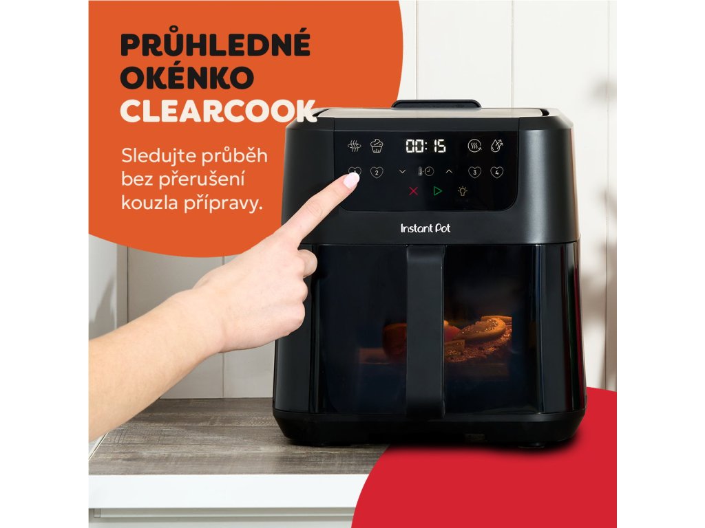 Instant Pot Vortex Compact 5l Kompaktná a ľahko použiteľná teplovzdušná fritéza do každej kuchyne Fritéza Instant Pot Vortex Compact 5 l je ideálnym riešením pre menšie kuchyne, páry a rodiny, ktoré chcú pripraviť chrumkavé a chutné jedlo s minimálnym množstvom oleja. Vďaka premyslenému dizajnu, moderným funkciám a jednoduchému ovládaniu zvládnete všetko od hranolčekov až po šťavnaté mäso rýchlejšie ako v bežnej rúre. Kľúčové vlastnosti a funkcie Multifunkcia 4 v 1 Air Fry - fritovanie horúcim vzduchom s minimom oleja Pečenie - pečte koláče, dezerty alebo menšie porcie pečiva Reheat - šetrný ohrev jedla bez vysušovania Dehydrovanie - sušenie ovocia, zeleniny alebo byliniek Kompaktný dizajn Úsporná veľkosť - ideálna do menších kuchýň a na 3-4 porcie Kapacita 5 l - zmestí sa do nej celé kurča (~1,5 kg) alebo 750 g hranolčekov Ideálna na každodenné použitie a ako doplnok k veľkej rúre Moderná technológia na pohodlné varenie ClearCook Window - veľké priehľadné okno s vnútorným osvetlením Umožňuje kontrolovať proces varenia bez prerušenia cyklu Indikátory priebehu varenia Jasne zobrazujú fázu, v ktorej sa pokrm nachádza Filter OdourErase™ Znižuje zápach a zabraňuje jeho šíreniu po celej kuchyni Zjednodušený dotykový panel S intuitívnymi ikonami pre jednoduché ovládanie Uloženie obľúbených receptov (prispôsobiteľné predvoľby receptov) Možnosť uloženia až 4 vlastných nastavení na rýchle varenie Jednoduchá údržba a bezpečnosť Vyberateľný kôš a nepriľnavý podnos na varenie, ktorý možno umývať v umývačke riadu Ovládacie prvky s prehľadnými ikonami a svetelným indikátorom priebehu varenia Bezpečná a tichá prevádzka, ideálna na každodenné používanie Hlavné výhody pre používateľov Chrumkavé výsledky s minimom oleja a kalórií Šetrí čas a energiu - až o 50 % rýchlejšie ako bežná rúra Kompaktná, ale dostatočne veľká na rodinné varenie Jednoduché používanie a čistenie, ideálne pre modernú domácnosťDodatočné parametre